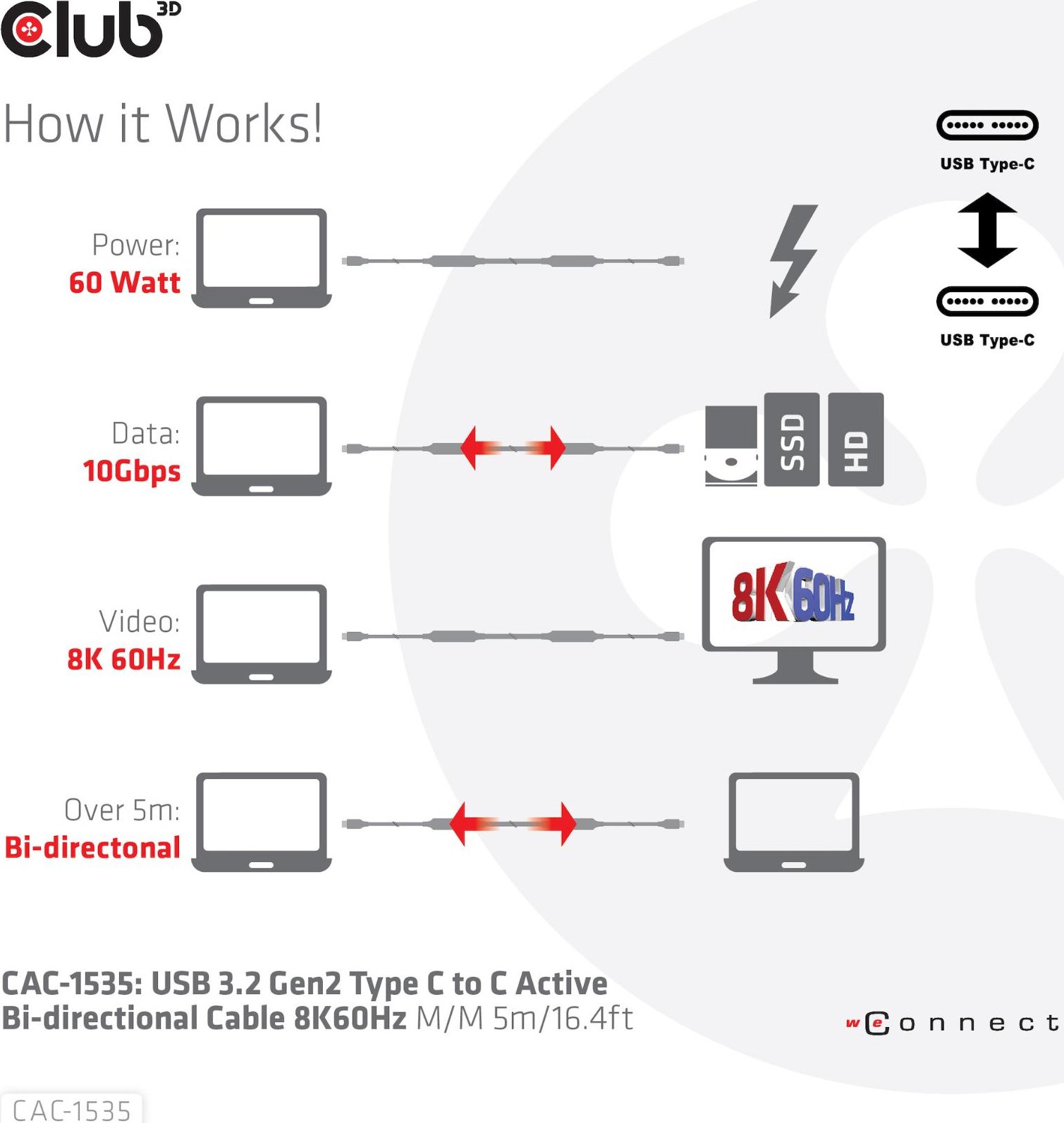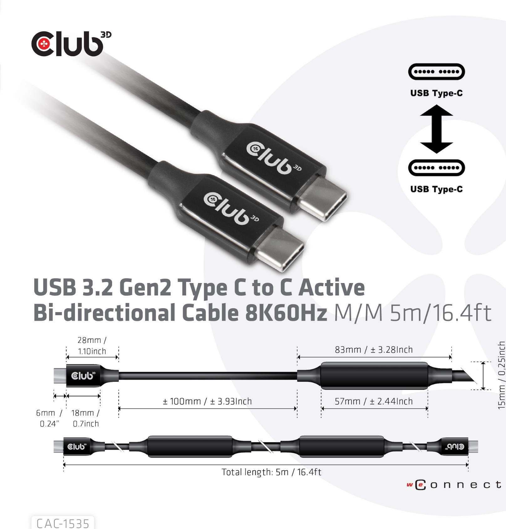 Cable Club 3d Usb-c M A Usb-c M 5m Negro (CAC-1535)