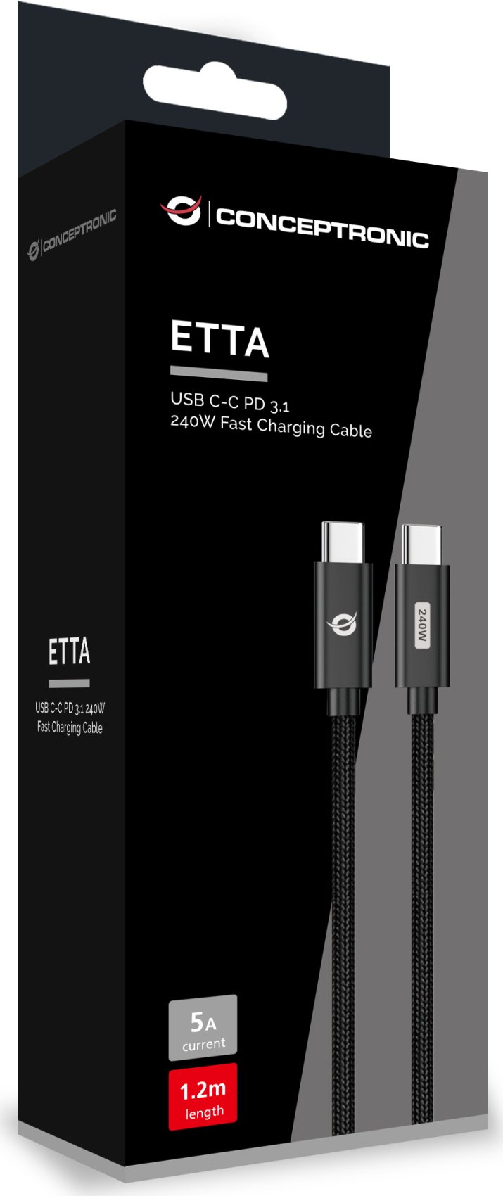 Cable Conceptronic Usb-c M M 240w 1.2m Negro (ETTA03B12)