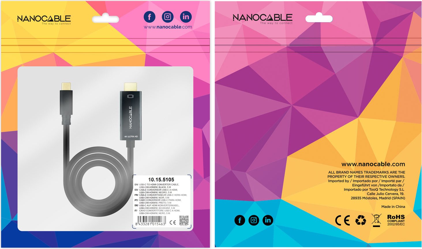 Nanocable Usb-c M A Hdmi M 5m Negro (10.15.5105)