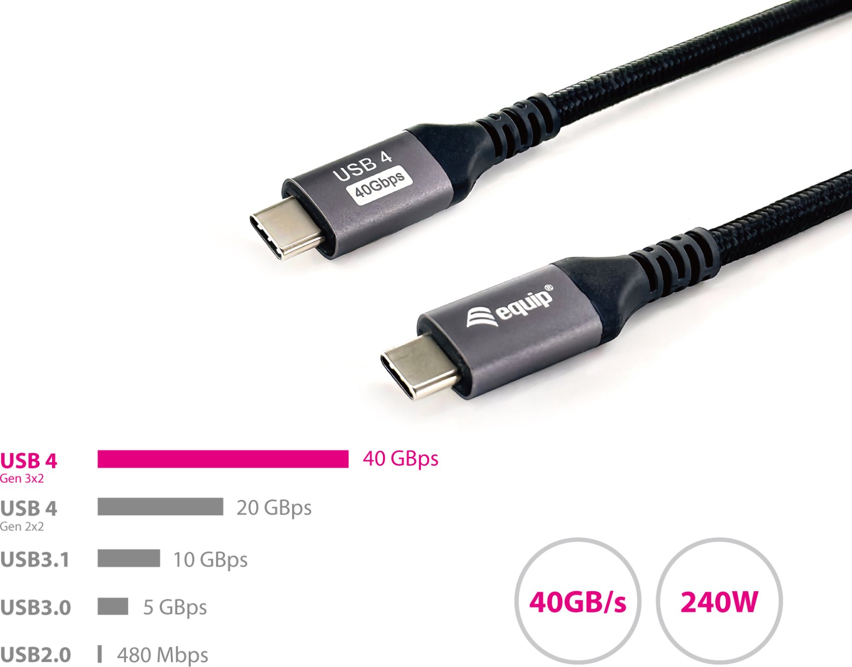Equip 128383 Cable Usb 4 Gen 3 C A C, M M, 2,0m, Pd3.1 240w, 8k 60hz, 40gbps, Negro