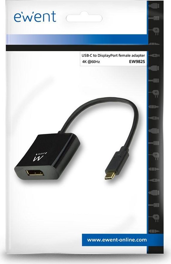 Ewent EW9825. Longitud de cable: 0,15 m, Conector 1: USB Tipo C, Conector 2: DisplayPort. Cantidad por paquete: 1 pieza(s), Tipo de embalaje: Bolsa de plástico