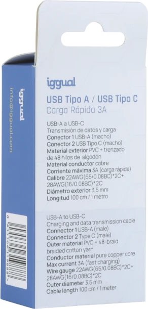 Iggual Cable Usb-a A Tipo C 3a 100 Cm Trenzado