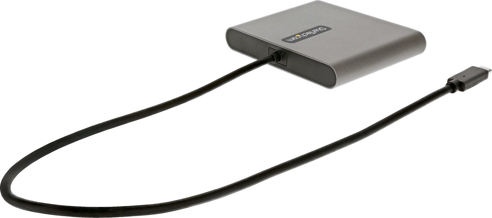 Adaptador Externo de Vídeo USB-C 4x 1080p para 4 MonitoresEste adaptador USB C a HDMI® le permite ampliar su escritorio añadiendo cuatro monitores o pantallas HDMI a su ordenador utilizando un solo puerto USB Tipo-C.Aumente su productividadEste adaptador de USB-C a 4 HDMI cuenta con cuatro salidas de vídeo, lo que aumenta su productividad al ofrecerle más espacio de pantalla para trabajar. Con las pantallas múltiples tendrá la libertad de acceder a varias aplicaciones al mismo tiempo y consultar material en una pantalla mientras compone en la otra. Utilice el adaptador multimonitor USBC a HDMI para ampliar o reflejar sus pantallas, o para crear un llamativo videowall.Vídeo y audio de alta definiciónEste adaptador para cuatro monitores le permite aprovechar las capacidades de vídeo de la conexión USB-C de su ordenador o portátil, para ofrecer resoluciones de alta definición de hasta 1920x1080 (1080p) en los cuatro puertos. El adaptador también admite audio de 2 canales a través de HDMI.Fácil configuraciónEl conversor de pantalla USB Tipo-C a HDMI está equipado con un cable USB-C conectado de 0,5 m que proporciona una distancia adicional entre el adaptador y su dispositivo anfitrión, lo que garantiza una configuración flexible. También admite una instalación automática del controlador para facilitar su uso.El adaptador de vídeo externo se alimenta por bus, sin necesidad de alimentación externa.Software del Asistente MultimonitorLa aplicación Multi-Monitor Assistant proporciona una interfaz de usuario que asiste a los usuarios en la multitarea y permite cambiar rápidamente de un monitor a otro. Permite funciones adicionales, ayudando a los usuarios a arrastrar y soltar, zoom opcional, escalado dividido y ventanas en cascada a la pantalla principal, así como a crear un muro de vídeo dinámico o matricial.El USBC2HD4 está respaldado por una garantía de 3 años de StarTech.com y un soporte técnico gratuito de por vida.Nota:Los cuatro monitores deben ser del mismo tamaño y resolución para lograr un videowall.El adaptador sólo es capaz de duplicar hasta dos pantallas adicionales.The StarTech.com Advantage