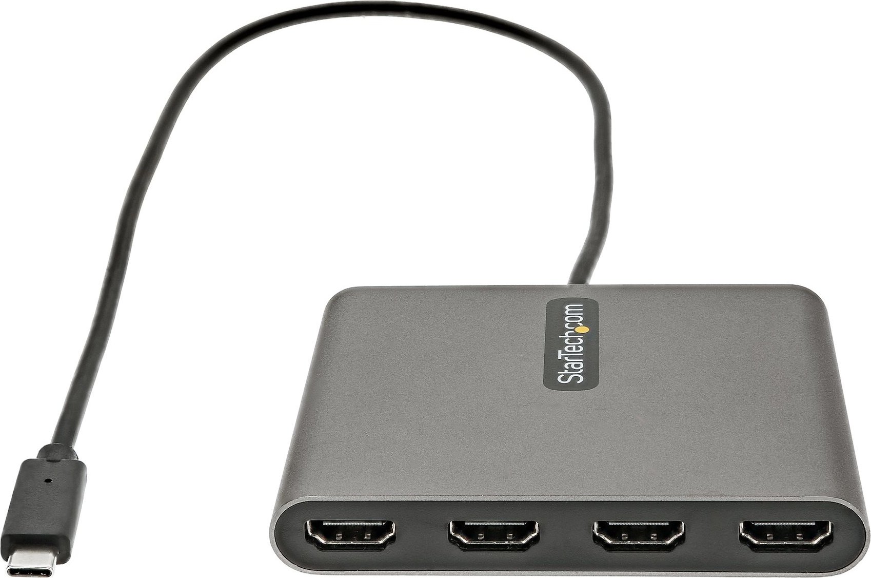 StarTech.com Adaptador USB-C a 4 Puertos HDMI - Tarjeta Gráfica y de Vídeo Externa - Dongle Llave USB Tipo C a 4x HDMI - 1080p a 60Hz - Conversor Multimonitor USB a HDMI - Solo para Windows. Conector USB: USB Tipo C, Género del conector USB: Macho, Factor de forma del conector USB: Derecho. Color del producto: Gris. Sistema operativo Windows soportado: Windows 10, Windows 10 Education, Windows 10 Education x64, Windows 10 Enterprise, Windows 10.... Ancho: 80 mm, Profundidad: 101 mm, Altura: 16 mm. Cantidad por caja: 40 pieza(s), Ancho de la caja principal: 315 mm, Longitud de la caja: 445 mm