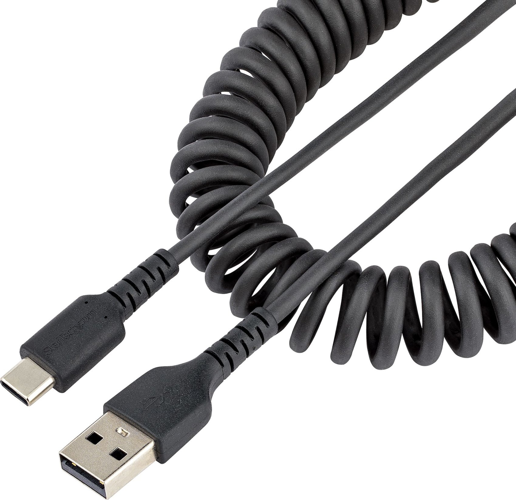 Cable de Carga USB A a C de 50cm, Cable USB Rizado DurableEste cable USB A a USB C rizado de 50cm puede soportar las exigencias diarias de carga y sincronización de sus dispositivos móviles. Se contrae hasta 32cm, lo que lo hace compacto y cómodo de guardar.Concebido para el Uso DiarioEl cable de carga USB A a USB C, de gran durabilidad, tiene un refuerzo de fibra de aramida que lo protege de la tensión de los dobleces frecuentes. Esto también permite que el cable se flexione sin estirarse en exceso ni dañar el núcleo del cable.Alivio de Tensión FlexibleEl cable USB A a USB C está fabricado para evitar que el conector se separe de la cubierta. El moldeado de alivio de tensión extra largo está probado para soportar más de 5.000 ciclos de flexión en un ángulo de 180°Conexión SuperiorEl cable durable soporta todas las especificaciones USB 2.0 proporcionando una conexión fiable para todos sus dispositivos USB-C. Soporta hasta 3A para cargar sus dispositivos compatibles con USB C.R2ACC-50C-USB-CABLE está respaldado por una garantía de por vida de StarTech.com® y un soporte técnico gratuito de por vida.The StarTech.com Advantage