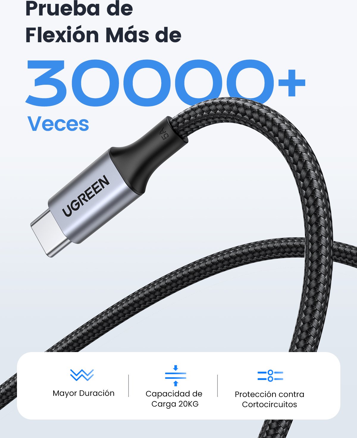 [Carregamento rápido de 100 W] UGREEN cabo USB C para USB C suporta carregamento rápido de PD3.0, SCP, PPS 45W e oferece potência de até 100 W (5 A/20 V). Leva apenas 30 minutos para carregar o iPad Pro 2024 para 50%, até o iPhone 16 pode ser carregado 50% em apenas 30 minutos.