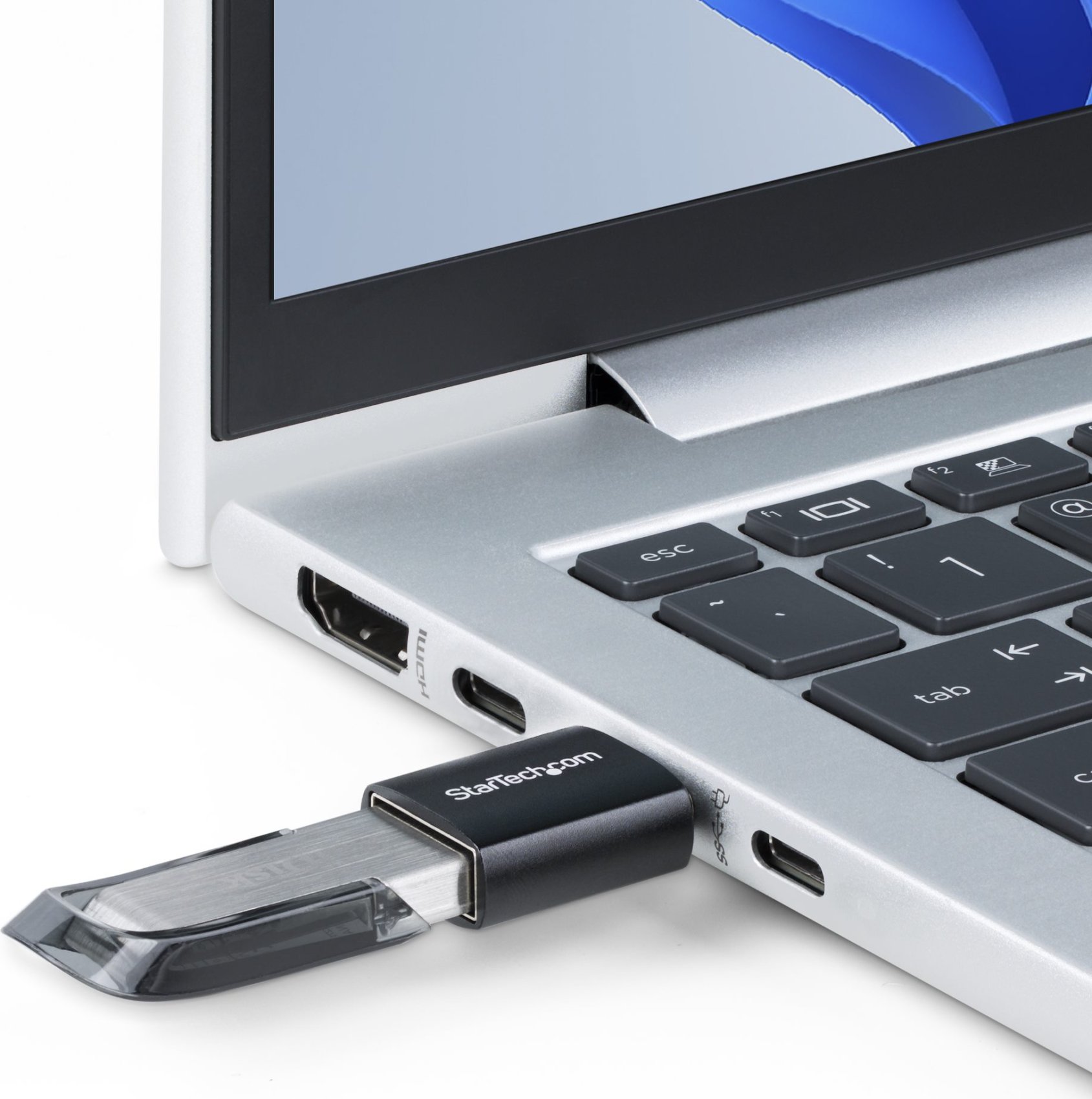 StarTech.com Adaptador USB-C a USB-A - USB Tipo C 5Gbps - Conversor USB Tipo C a USB-A - USB-C Macho a USB-A Hembra - Carcasa de Metal. Conector 1: USB Type-C, Conector 2: USB tipo A, Contactos del conector chapado: Níquel. Color del producto: Negro