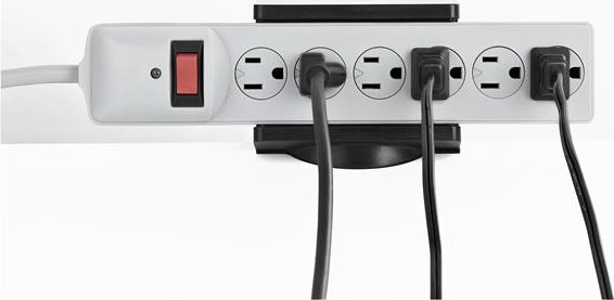 Facilite el acceso a sus enchufes de alimentación, gracias a la conexión de la regleta de alimentación donde más la necesita. Fije la regleta de alimentación a su escritorio, mesa, mostrador u otra superficie plana, mediante este soporte con pieza de sujeción para montaje en escritorio.