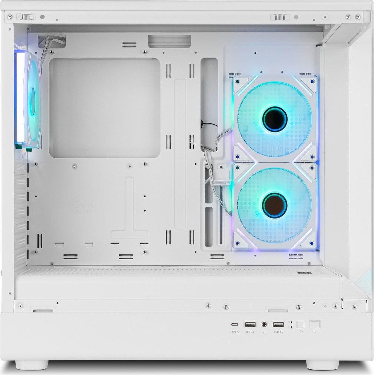 Esta semitorre de Nox, disponible en blanco y negro, ha sido diseñada para conseguir que tu ordenador sea una máquina espectacular. Su impresionante estética minimalista crea un espectáculo visual de otro nivel con su ventana lateral panorámica frameless, gracias a sus dos cristales templados uno situado en su frontal y otro en el lateral, permitiendo que tengas una visión total del interior de tu build.