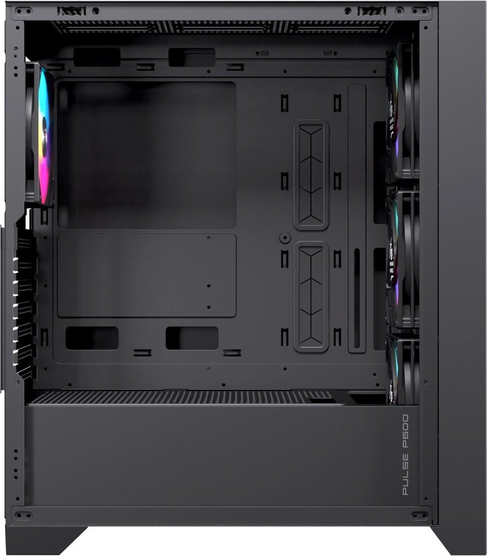 Adapte el estilo a sus necesidades. Pulse P600 cuenta con un innovador diseño de panel intercambiable que le permite cambiar fácilmente entre paneles frontales de cristal templado y de malla. Gracias a su diseño amplio y cuidado, ofrece un mayor potencial de refrigeración al tiempo que mantiene un acabado elegante.