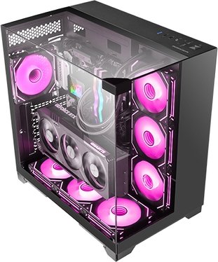 Con soporte para refrigeración líquida de hasta 360mm y capacidad para hasta 7 ventiladores, garantiza un flujo de aire eficiente y uniforme. Su diseño de doble cámara separa la fuente de los componentes principales, optimizando la disipación térmica y permitiendo un montaje más limpio y organizado.