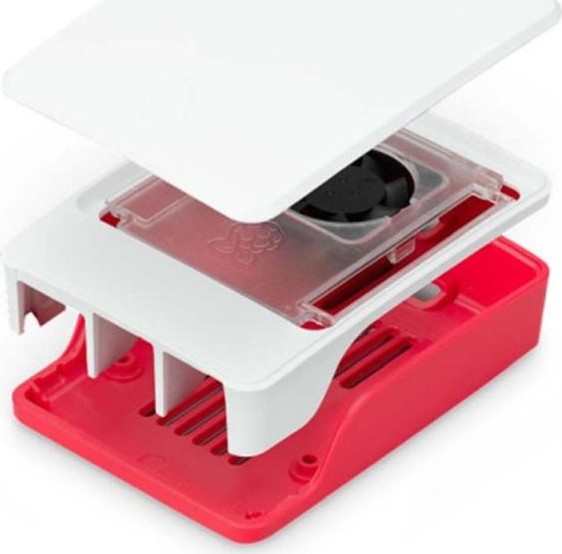 Raspberry Caja Para Pi 5 Con Ventilador Roja Y Blanca