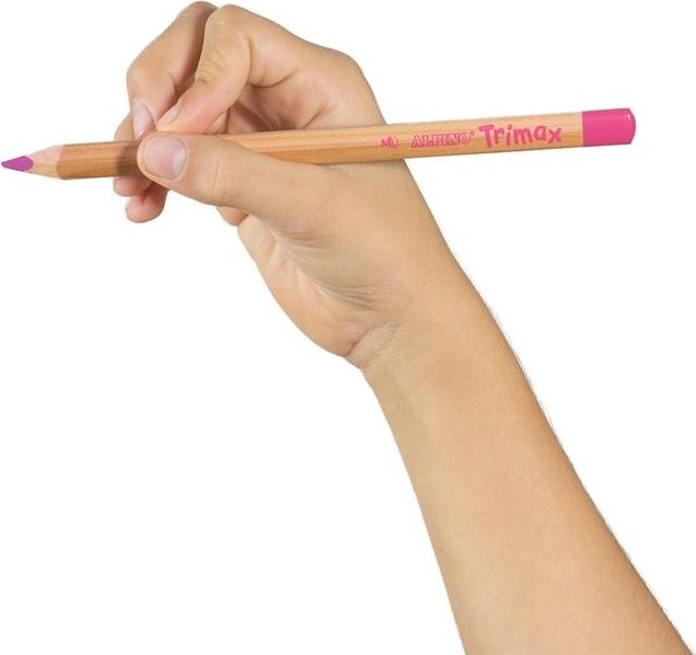 Estuche de 12 lápices de colores gruesos con forma triangular ergonómica que se adapta a los dedos de los niños favoreciendo el agarre. Mina de 5,4 mm. resistente al agua. Incluye bandeja organizadora y sacapuntas especial.