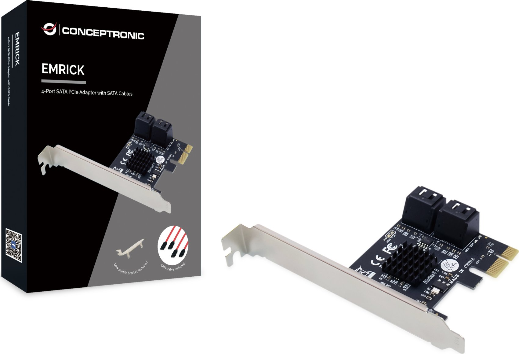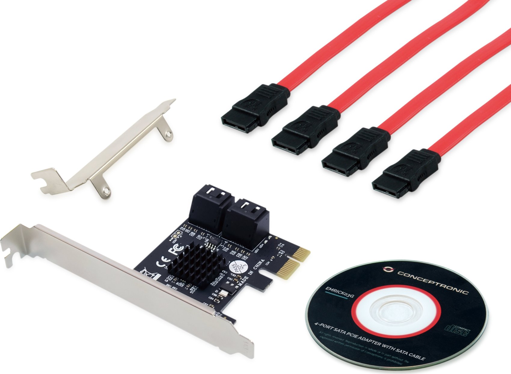 Conceptronic EMRICK03G. Interfaz de host: PCIe, Interfaz de salida: SATA. Color del producto: Negro, País de origen: China. Tasa de transferencia de datos (max): 6 Gbit/s. Sistema operativo Windows soportado: Windows 10, Windows 10 Education, Windows 10 Education x64, Windows 10 Enterprise, Windows 10.... Ancho: 43 mm, Profundidad: 18 mm, Altura: 65 mm