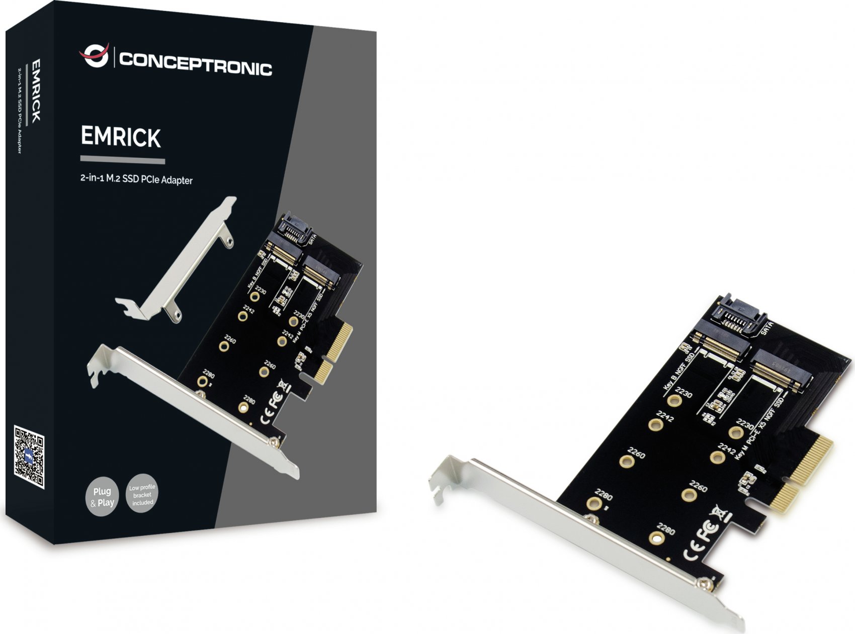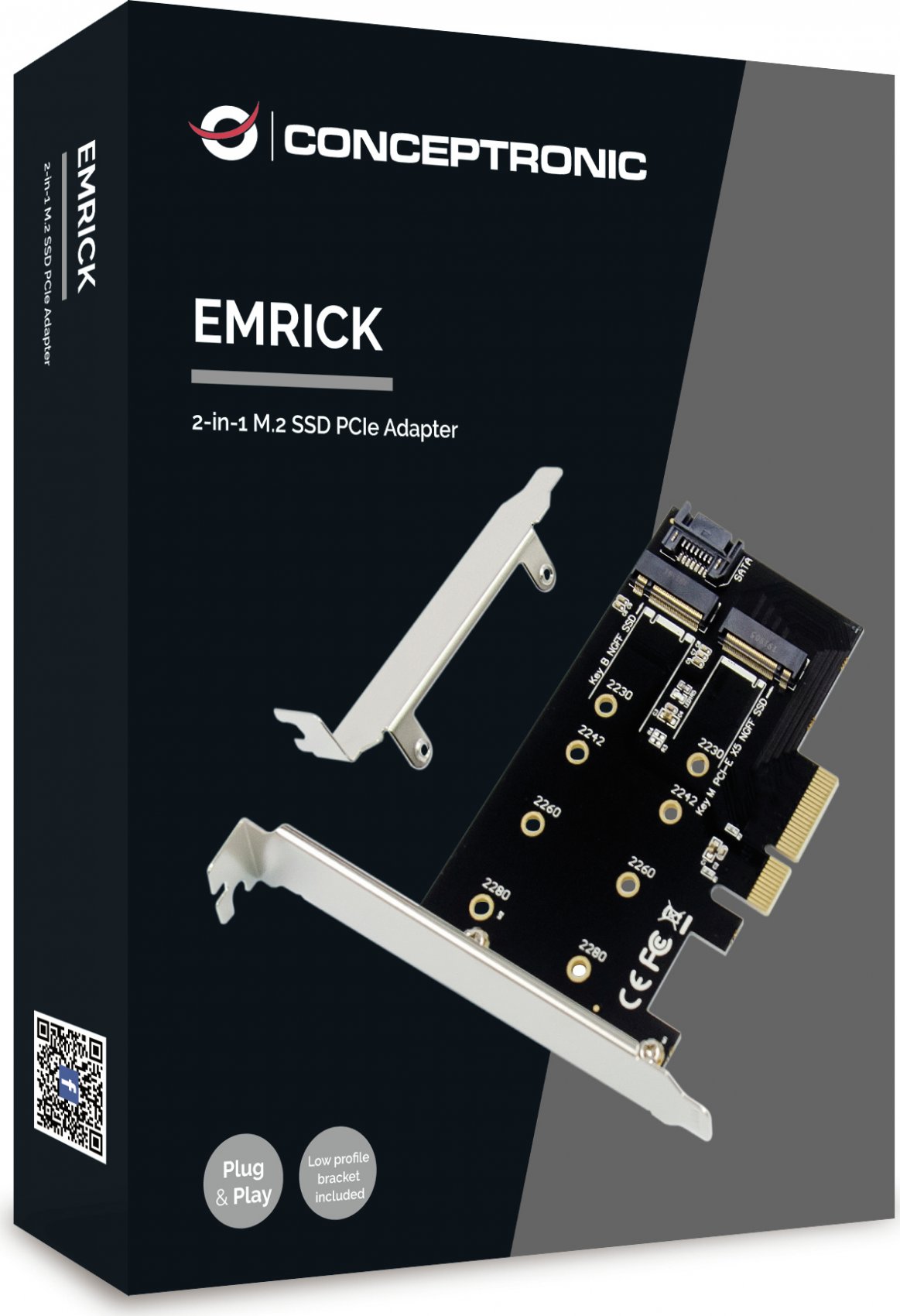 Conceptronic EMRICK04B. Interfaz de host: PCIe, Interfaz de salida: M.2, Estándar de la tarjeta de expansión: PCIe 3.0. Tipo de enfriamiento: Pasivo, País de origen: China. Circuito integrado: JMB585, Tasa de transferencia de datos (max): 6 Gbit/s. Sistema operativo Windows soportado: Windows 10, Windows 10 Education, Windows 10 Education x64, Windows 10 Enterprise, Windows 10.... Ancho: 70 mm, Profundidad: 114 mm, Altura: 18 mmMarca: