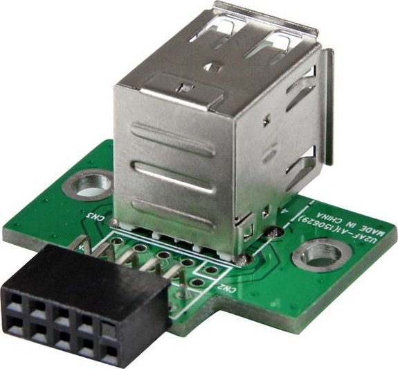 Este cabezal USB A a USB para placa base, de 4 pines, se conecta directamente en el cabezal USB de una placa base, a fin de proporcionar dos puertos USB A hembra. Solución económica para cualquier caso en que se requieran puertos USB 2.0 hembra; por ejemplo, para utilizar una unidad de memoria Flash USB de arranque como unidad SSD o para almacenar datos en aplicaciones integradas.