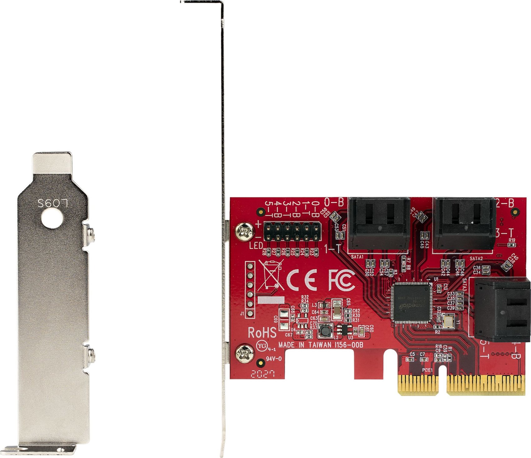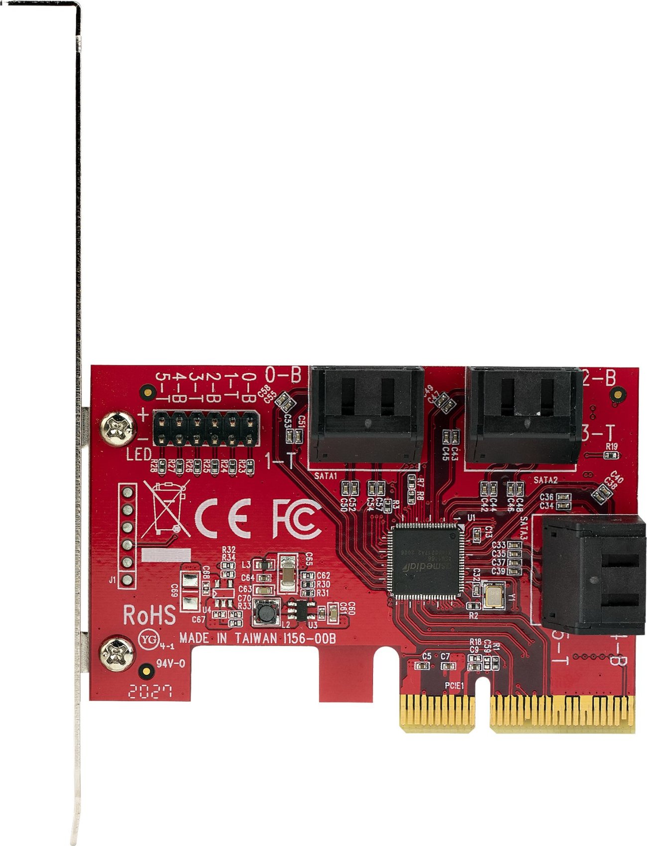 La tarjeta controladora SATA se caracteriza por su instalación plug-and-play y puede instalarse en sistemas informáticos de perfil completo y de perfil bajo con un soporte de perfil completo preinstalado y un soporte de perfil bajo intercambiable (de media altura) incluido. La tarjeta también es compatible con sistemas de gestión de datos de software de almacenamiento como Storage Spaces (Microsoft) , RAID Assistant (MacOS) y mdraid/mdadm (Linux), para una configuración, partición y creación de matrices RAID por software sin complicaciones.