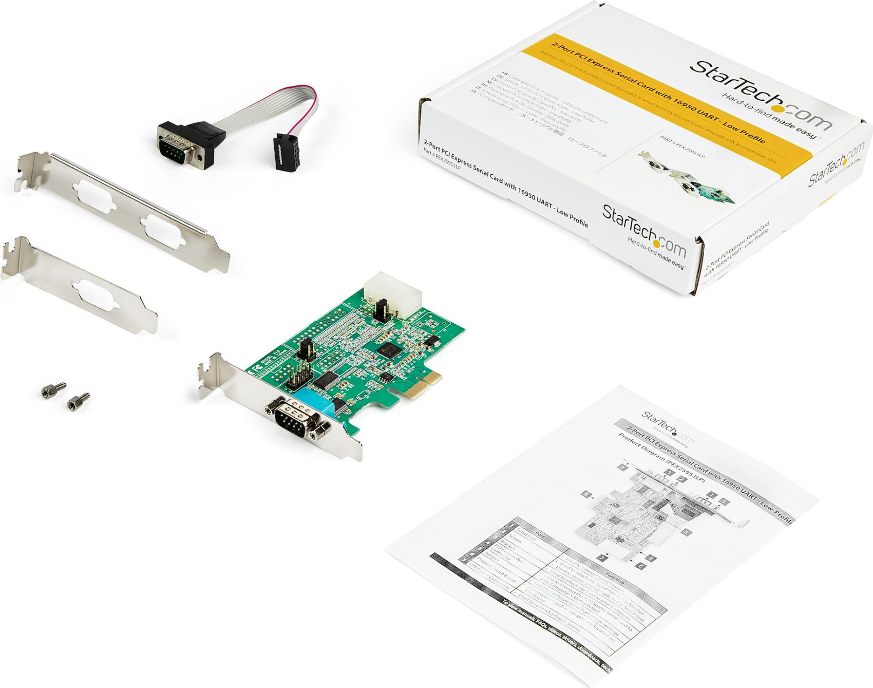 - Tarjeta Adaptadora Serie PCI Express RS232 de 2 Puertos - Tarjeta Controladora Serie PCIe RS232 - PCIe a Serie DB9 - UART 16950 - Tarjeta de Perfil Bajo para Windows y Linux