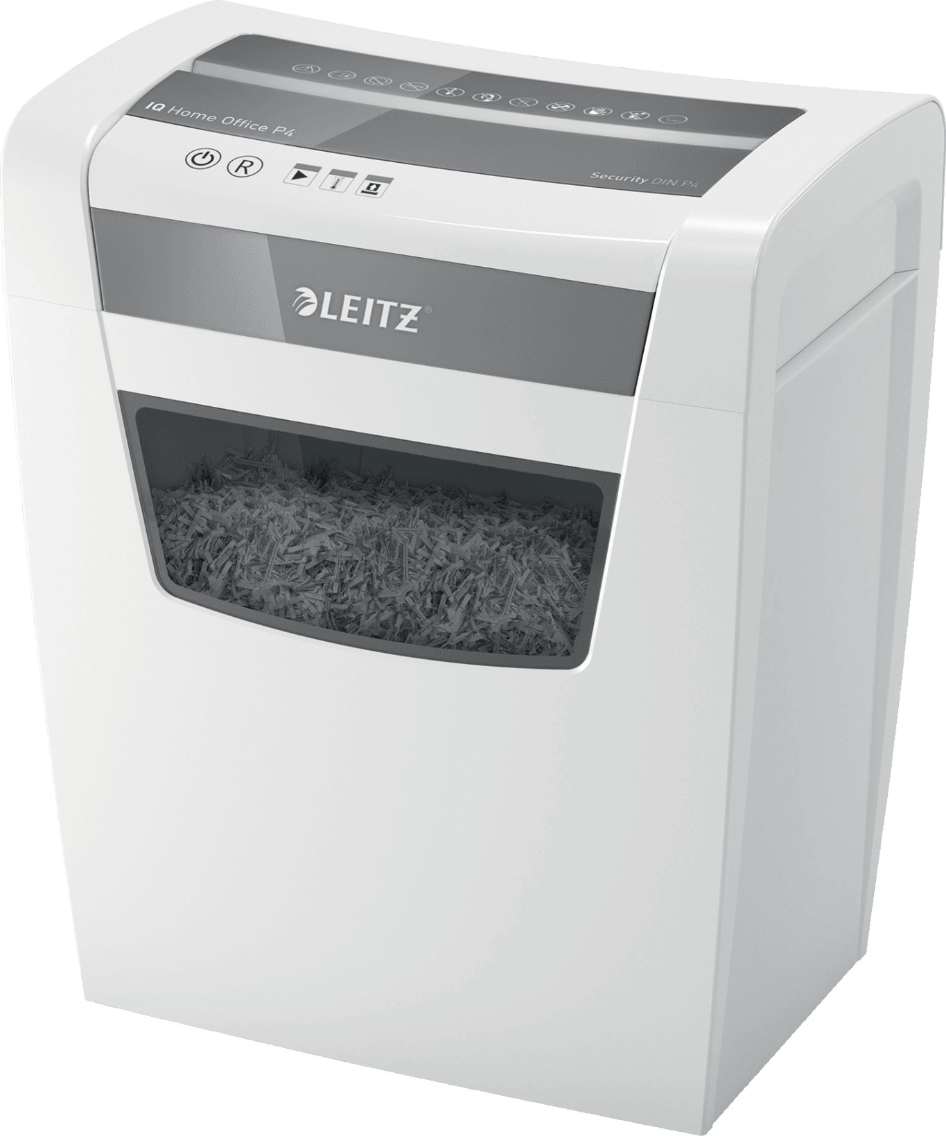 Leitz IQ Home Office P-4. Tipo de triturador de papel: Corte en partículas, Ancho de trabajo: 22 cm, Tamaño de trituración de papel: 4 x 28 mm. Voltaje de entrada AC: 220 - 240 V, Frecuencia de entrada AC: 50 / 60 Hz, Corriente: 0,8 A. Ancho: 356 mm, Profundidad: 238 mm, Altura: 423 mm