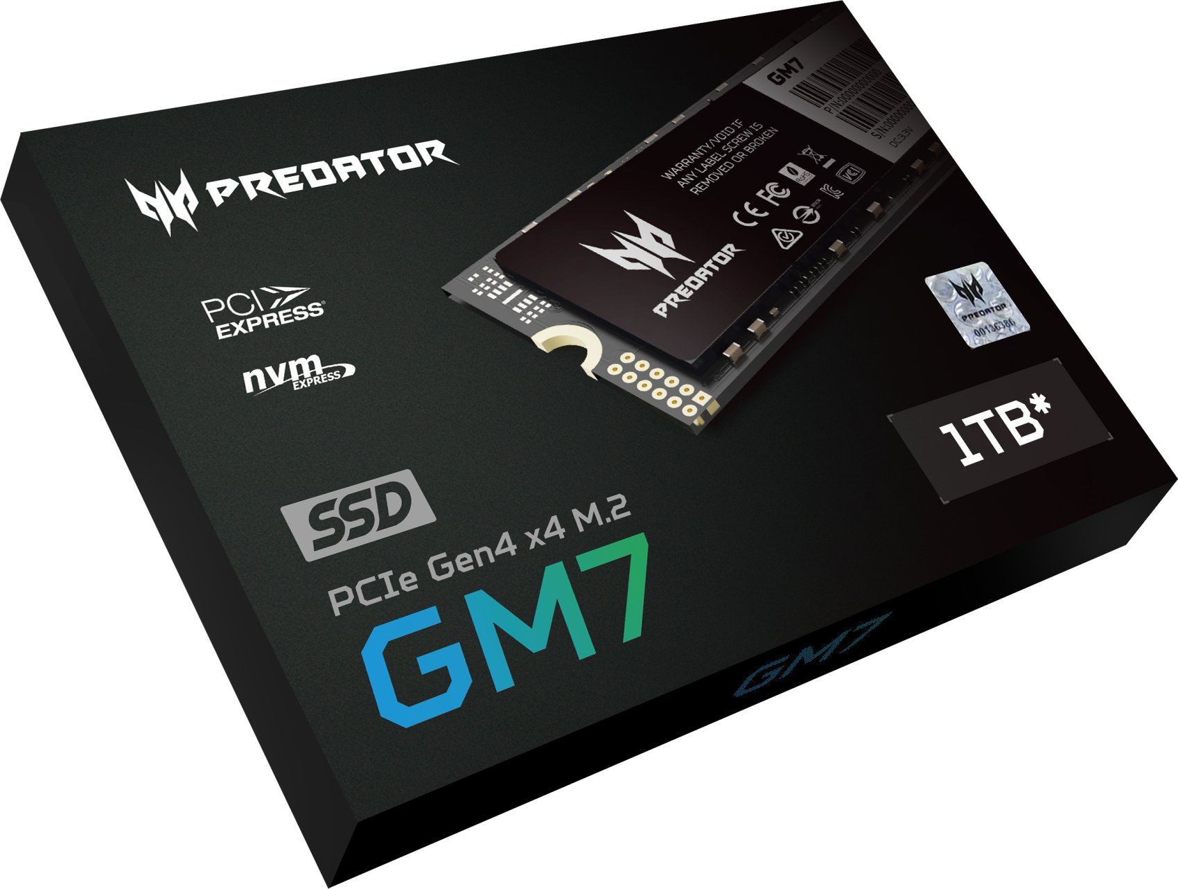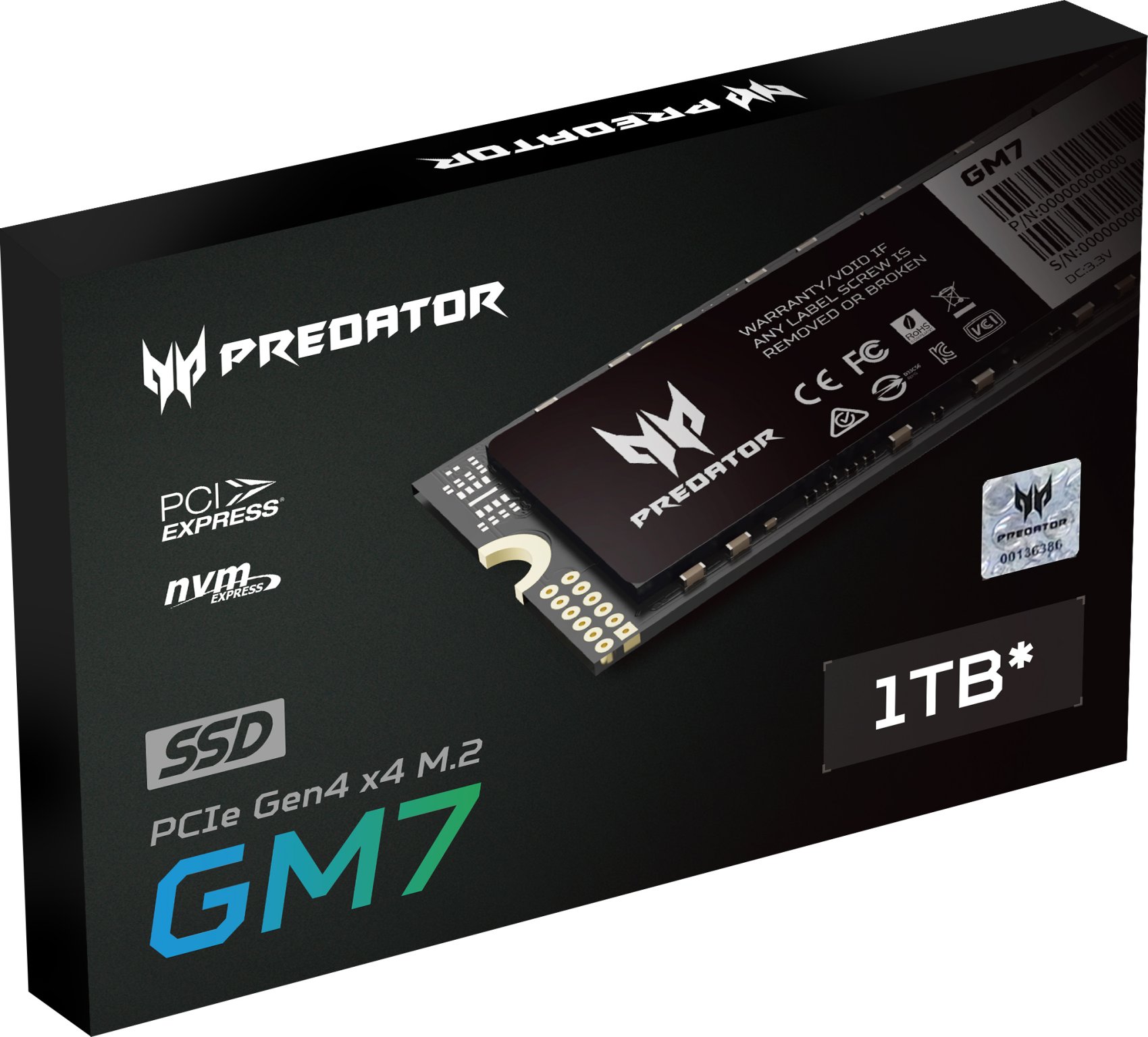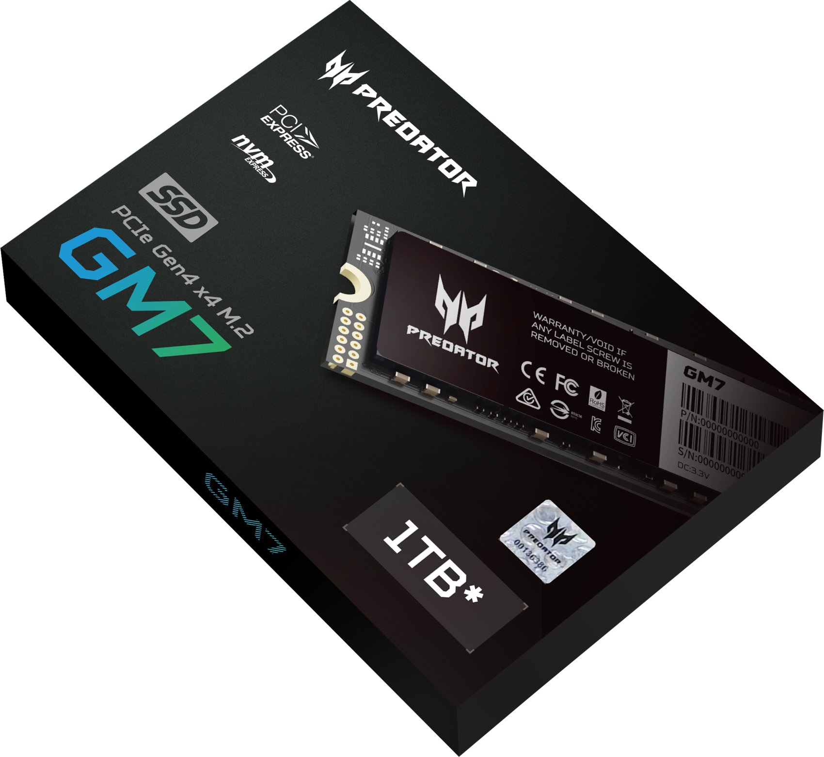 Predator GM7-1TB. SDD, capacidad: 1 TB, Factor de forma de disco SSD: M.2, Velocidad de lectura: 7200 MB/s, Velocidad de escritura: 6300 MB/s, Componente para: PC/ordenador portátil