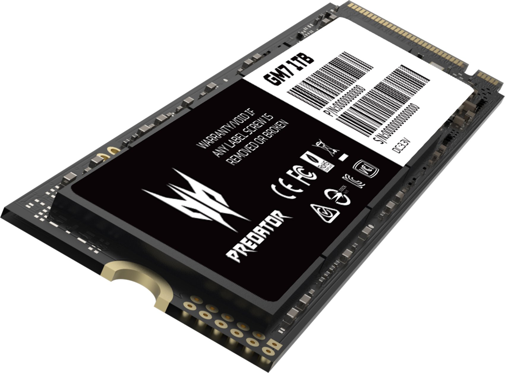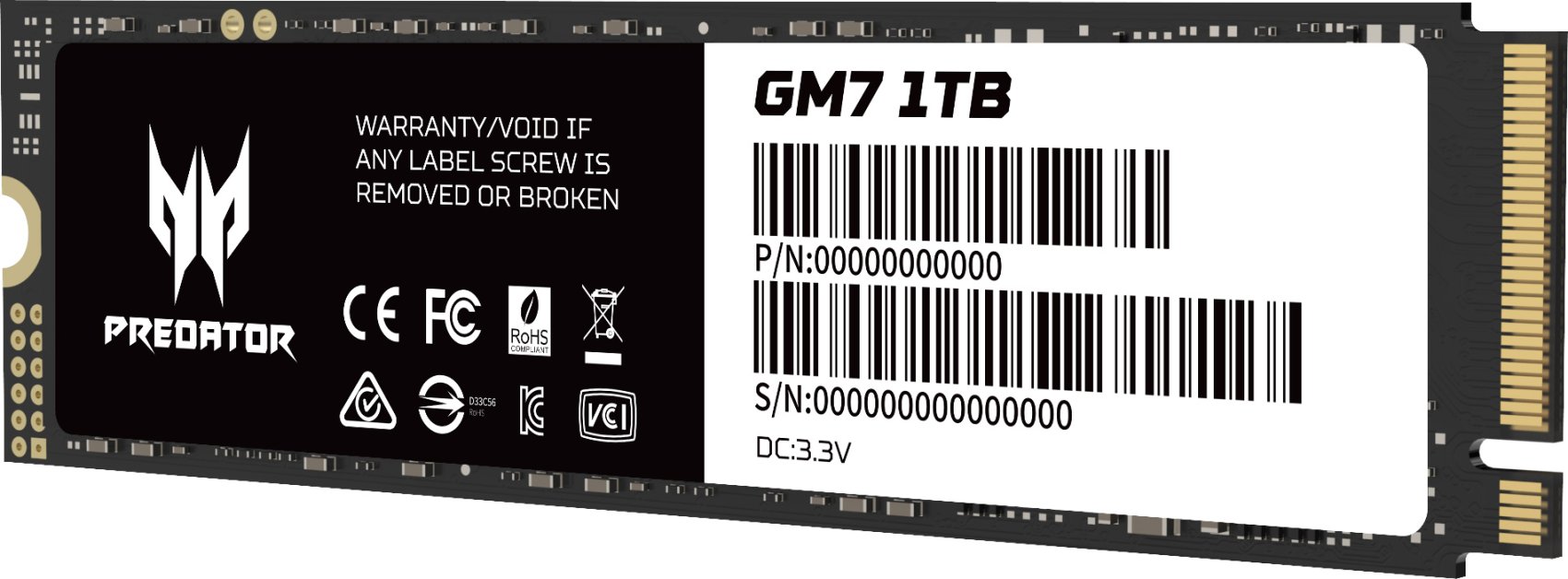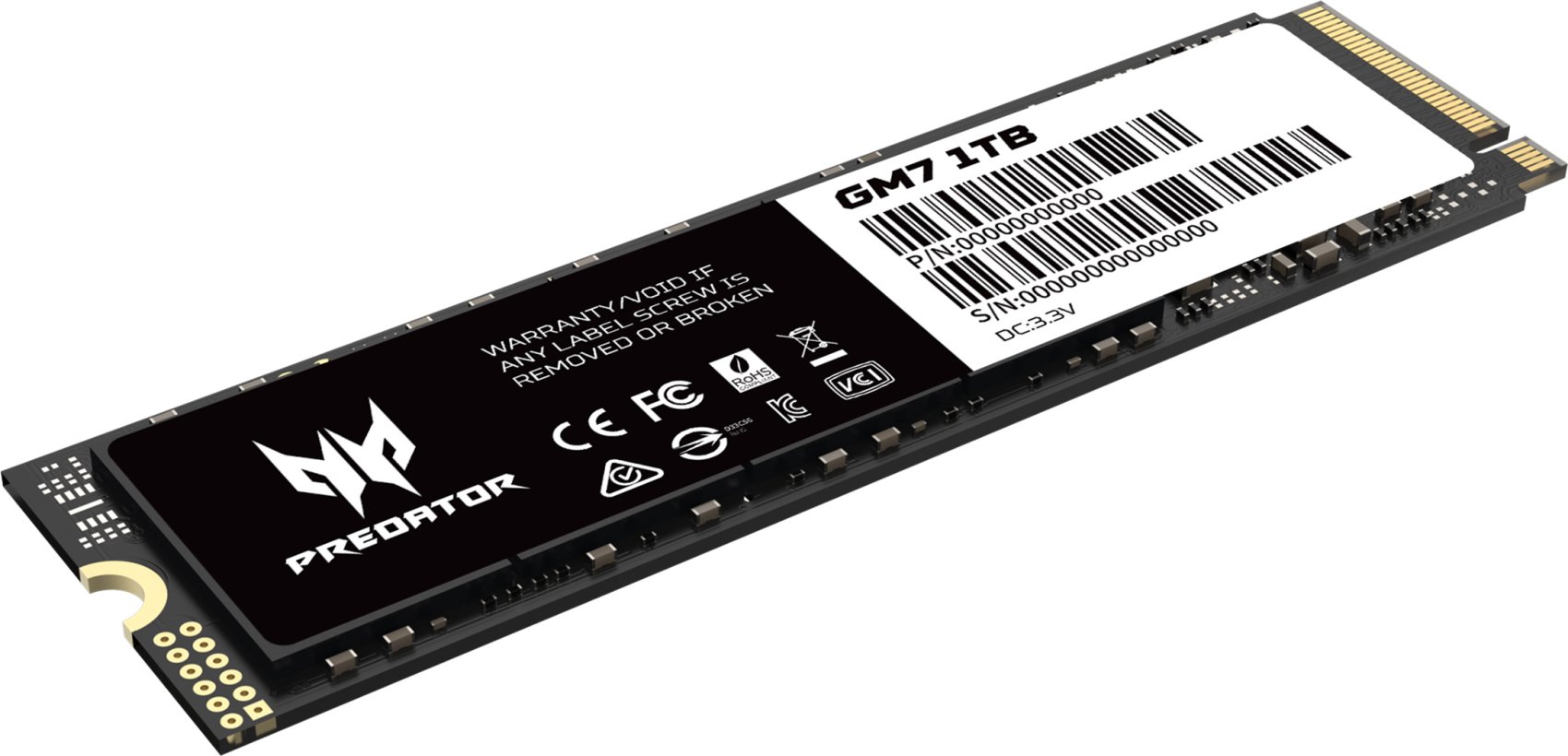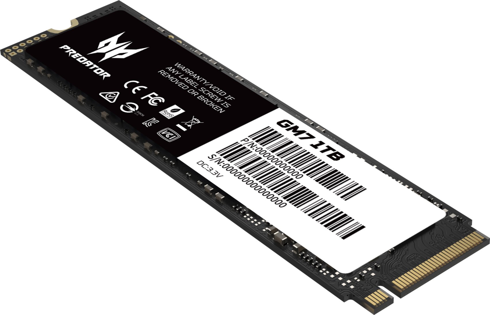 Predator GM7-1TB. SDD, capacidad: 1 TB, Factor de forma de disco SSD: M.2, Velocidad de lectura: 7200 MB/s, Velocidad de escritura: 6300 MB/s, Componente para: PC/ordenador portátil