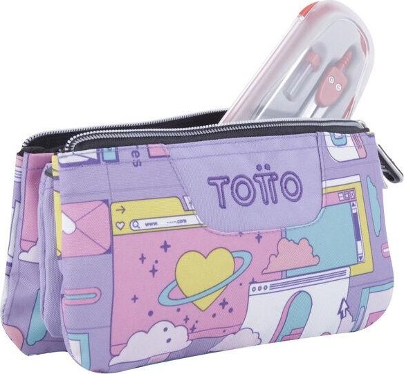 Totto Ac52eco012-2210z-2qi Caja De Lápices Estuche Suave Poliéster Azul, Rosa, Violeta, Blanco, Amarillo