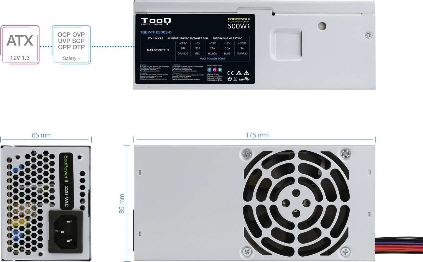 Ecopower II es la nueva generaciуn de las fuentes Ecopower de TOOQ. La nueva versiуn de fuentes incluye ACTIVE PFC (PFC ACTIVO, PF>0.99, no todos los modelos llevan PFC ACTIVO) de alta calidad, por lo que se garantiza al menos un 78% de eficiencia. Con la tecnologнa PFC Activo, la fuente produce mucho menos calor que una fuente con PFC Pasivo, con lo cual se puede prolongar la vida ъtil de la fuente. Ademбs, la serie Ecopower II lleva ventilador sъper silencioso de alta calidad, doble raнl +12V muy estable y protecciones del sistema electrуnico de alta tecnologнa.