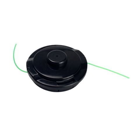 Cabezal universal para desbrozadora. Salida del hilo mediante pulsador semiautomático en la base. Desmontaje rápido de la máquina para una carga de hilo rápida y eficaz.