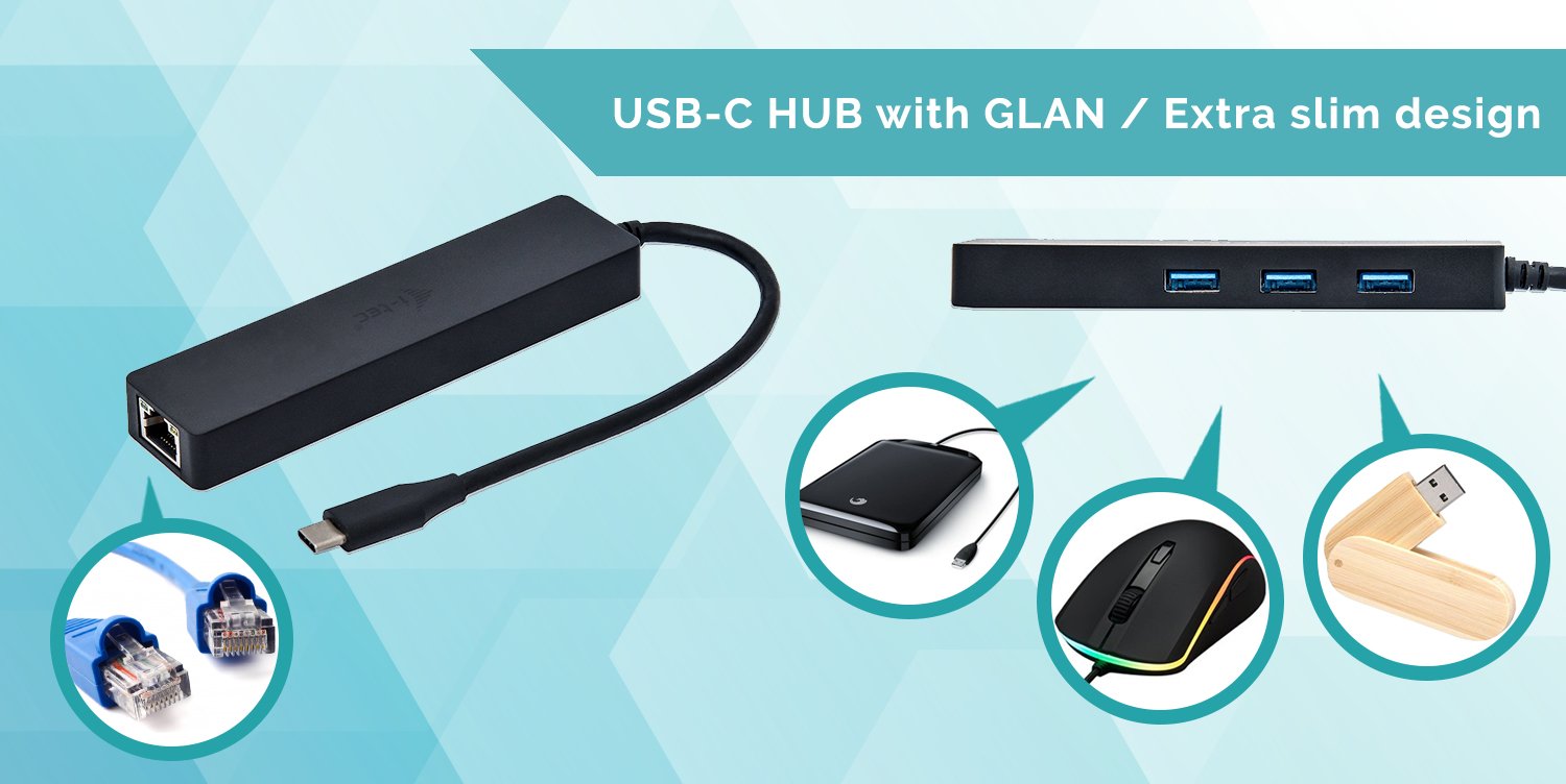 - USB-C Slim Passive HUB 3 Port + Gigabit Ethernet Adapter