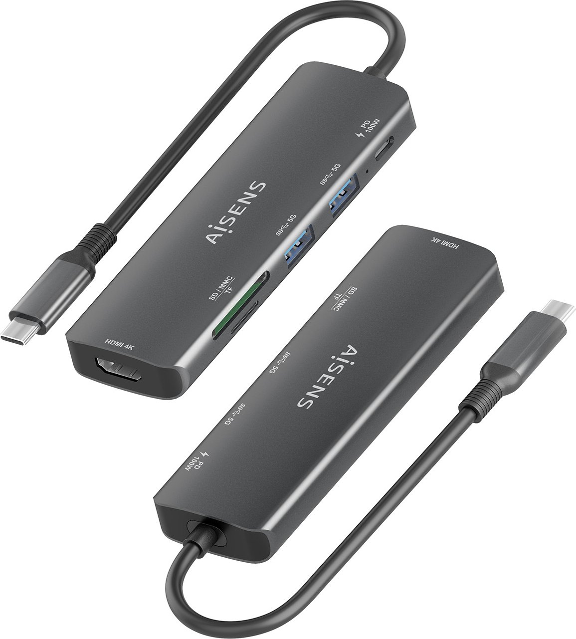 Aisens Docking Station Usb-c A 6 En 1 Usb-c A 1xhdmi, 2xusb-a, 1xusb-c Pd 100w, 1xsd, 1xmicro Sd