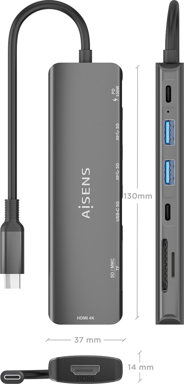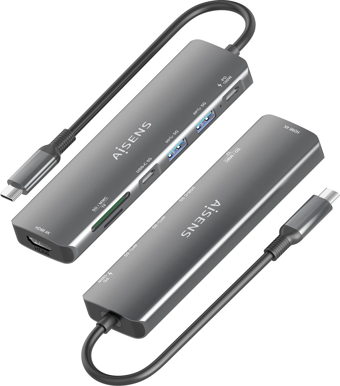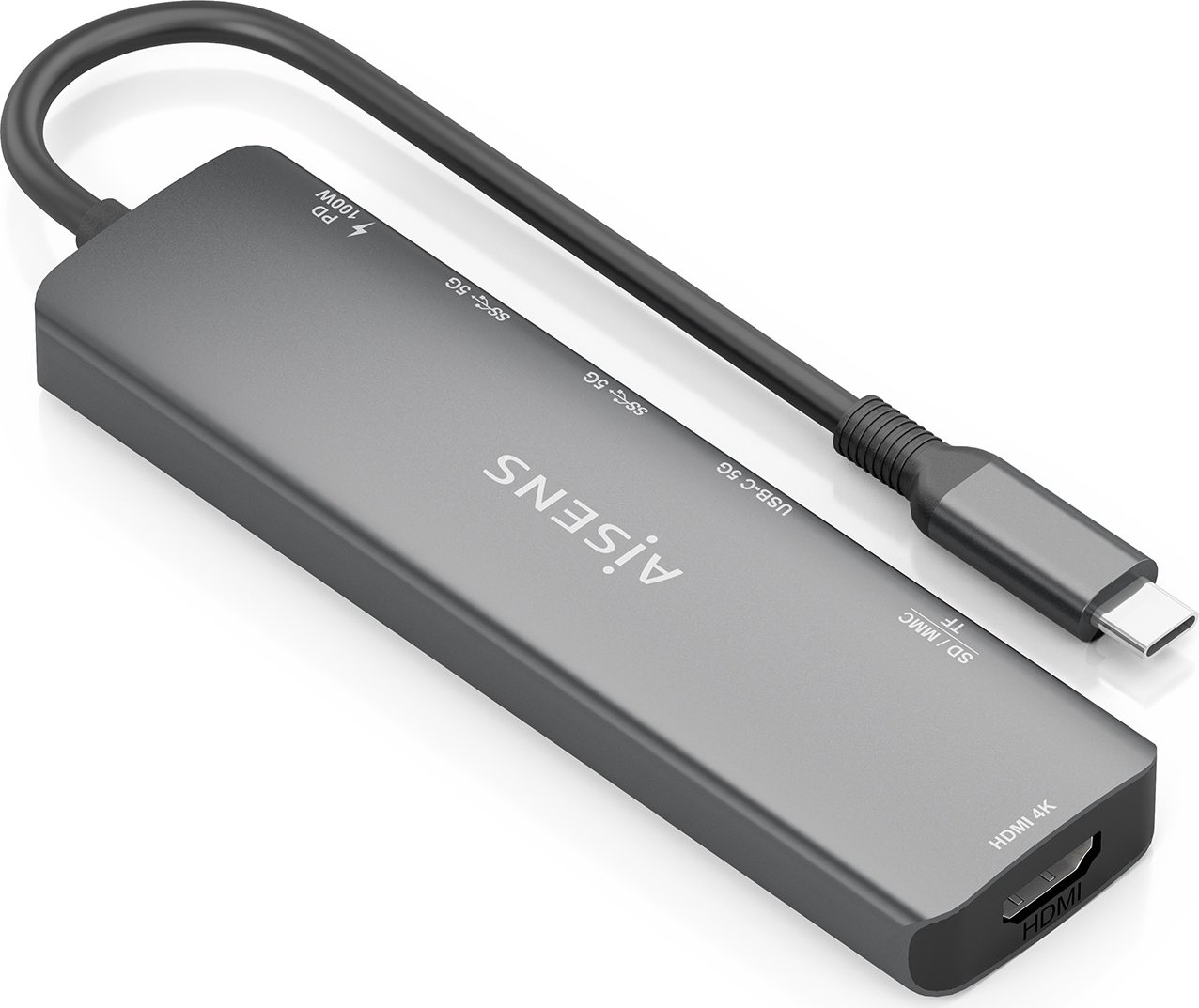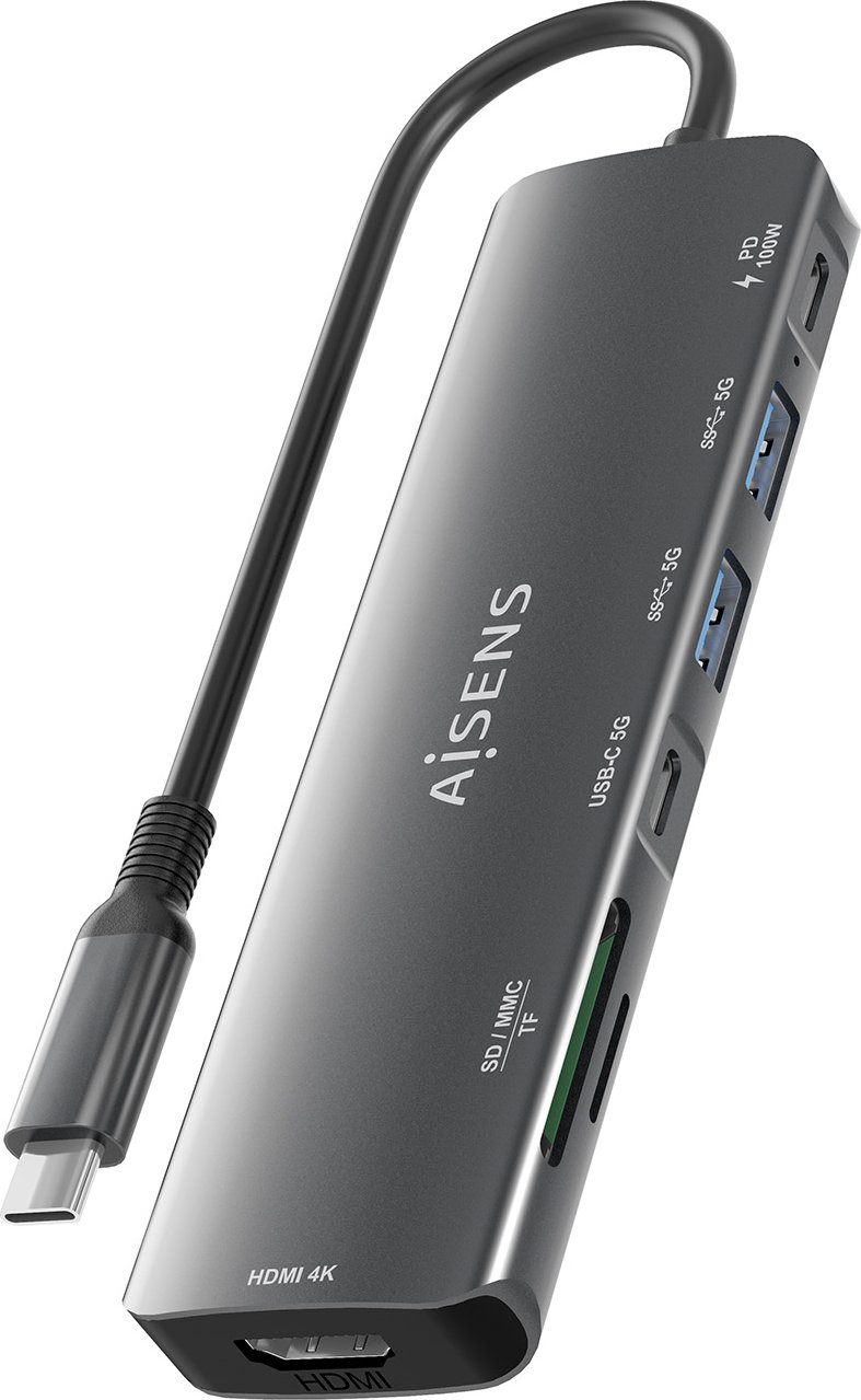 Aisens Docking Station Usb-c A 7 En 1 Usb-c A 1xhdmi, 2xusb-a, 1xusb-c, 1xusb-c Pd 100w, 1xsd, 1xmicro Sd