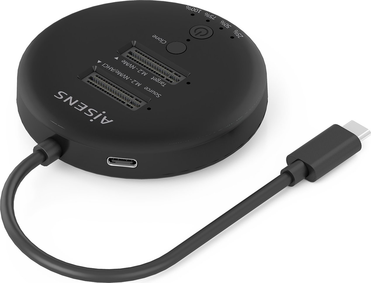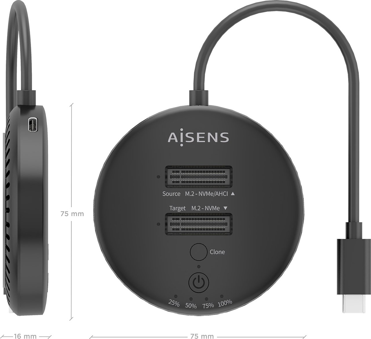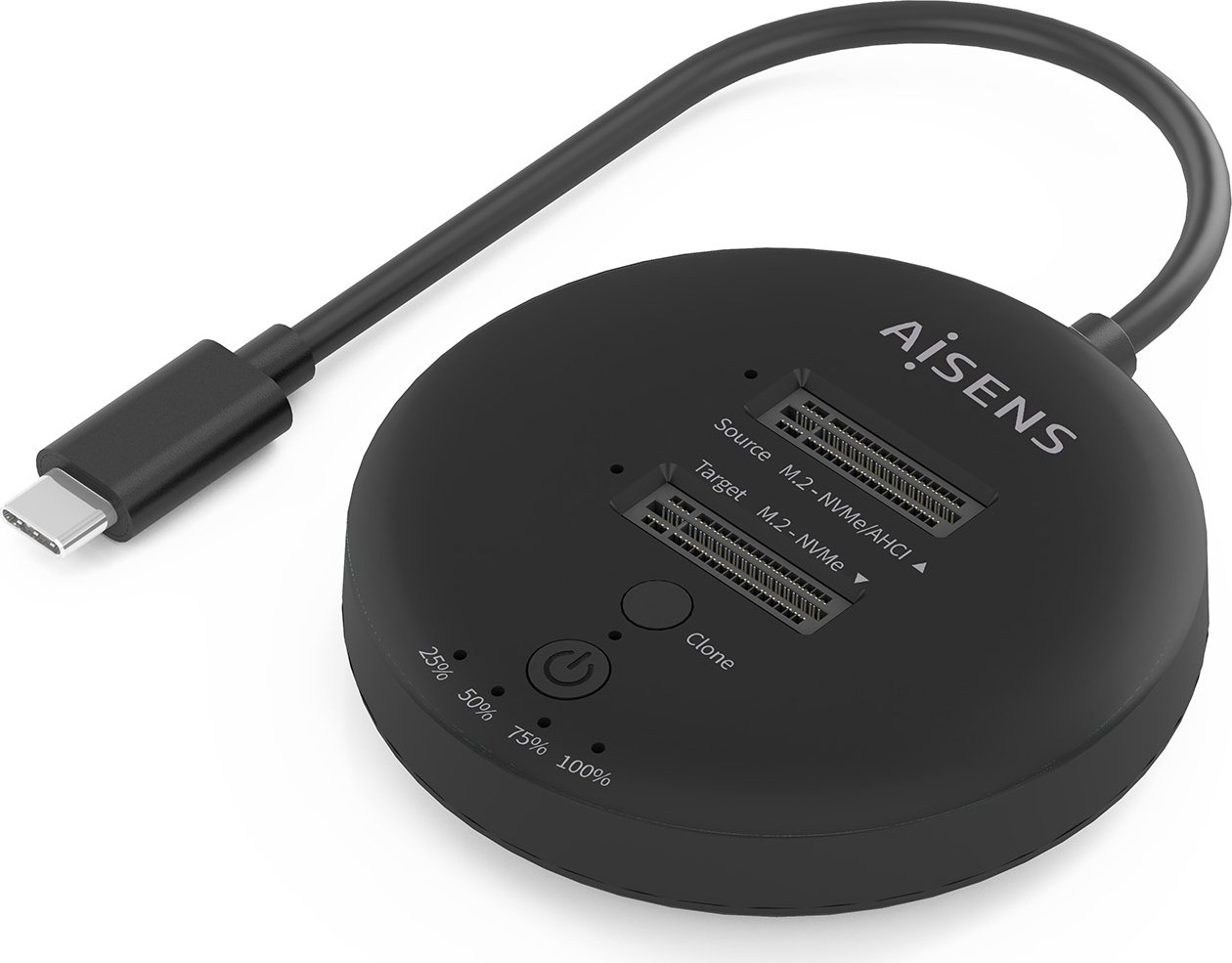 Aisens Estacion De Docking De Doble Bahia Nvme A Usb 3.2 Gen2x2, Clone, Negro
