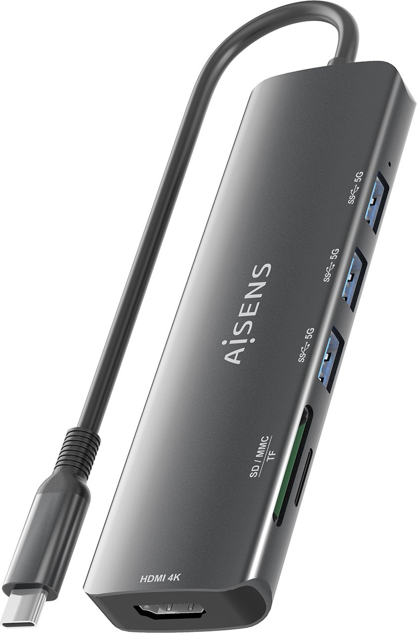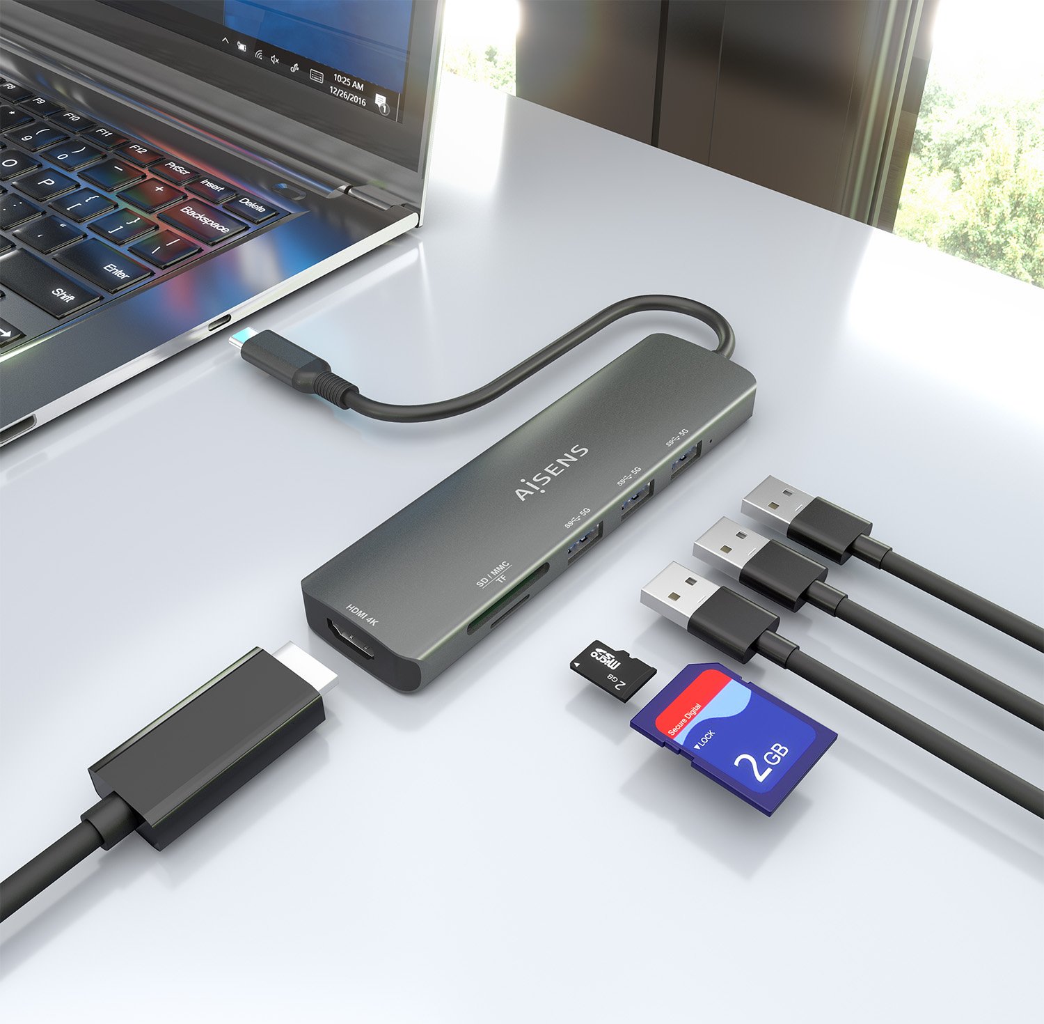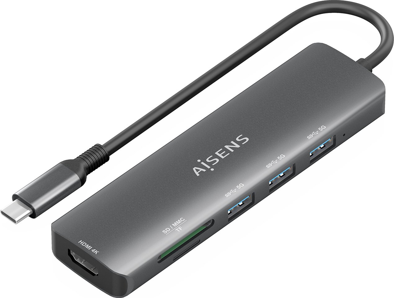 Aisens Usb-c Dock 6 En 1, Usb-c A, 1x Hdmi, 3x Usb-a, 1x Sd, 1x Microsd, Gris, 15cm
