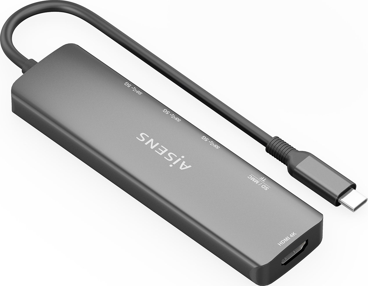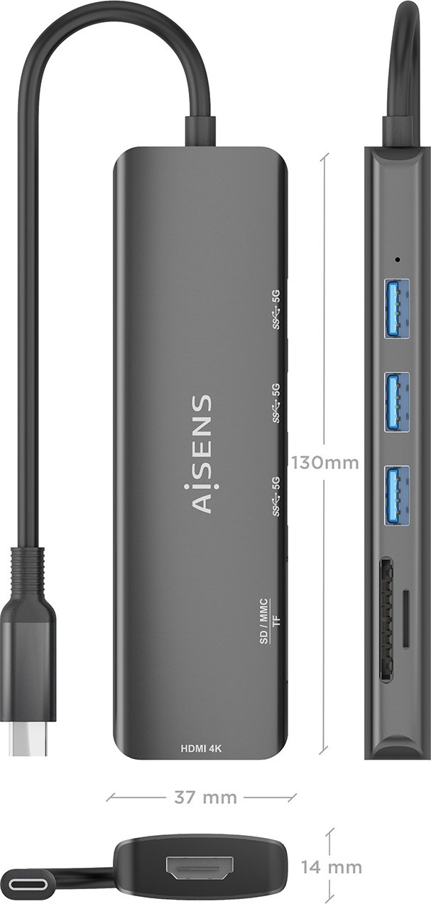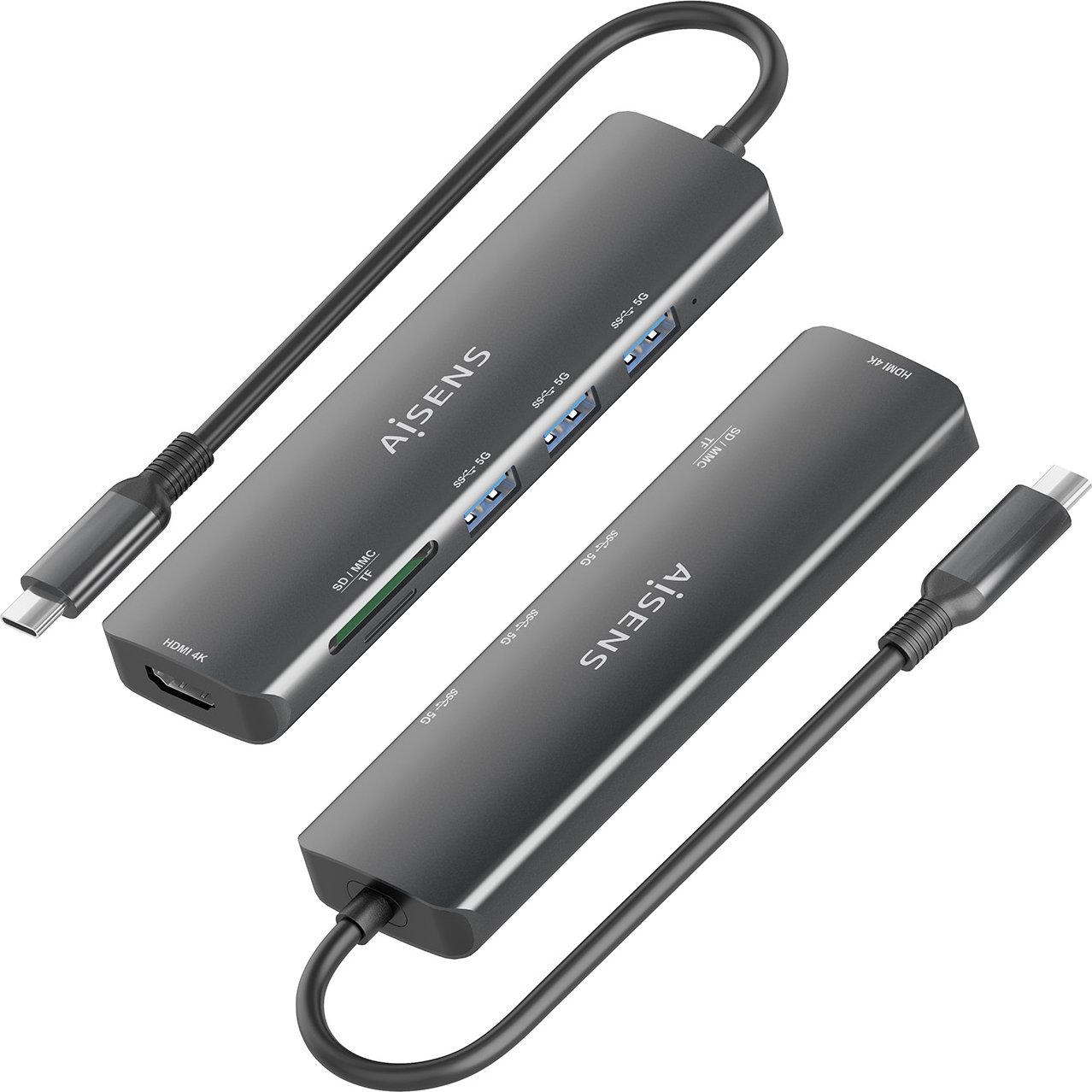 Aisens Usb-c Dock 6 En 1, Usb-c A, 1x Hdmi, 3x Usb-a, 1x Sd, 1x Microsd, Gris, 15cm