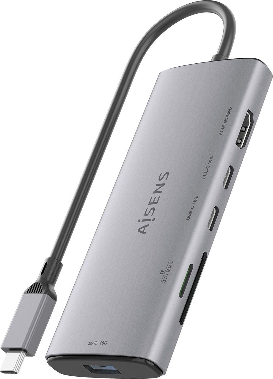 Aisens Usb-c Dock 6 En 1, Usb-c A 1xhdmi, 1xusb-a 10g, 2xusb-c 10g, 1xsd, 1xmicrosd, Gris, 20cm