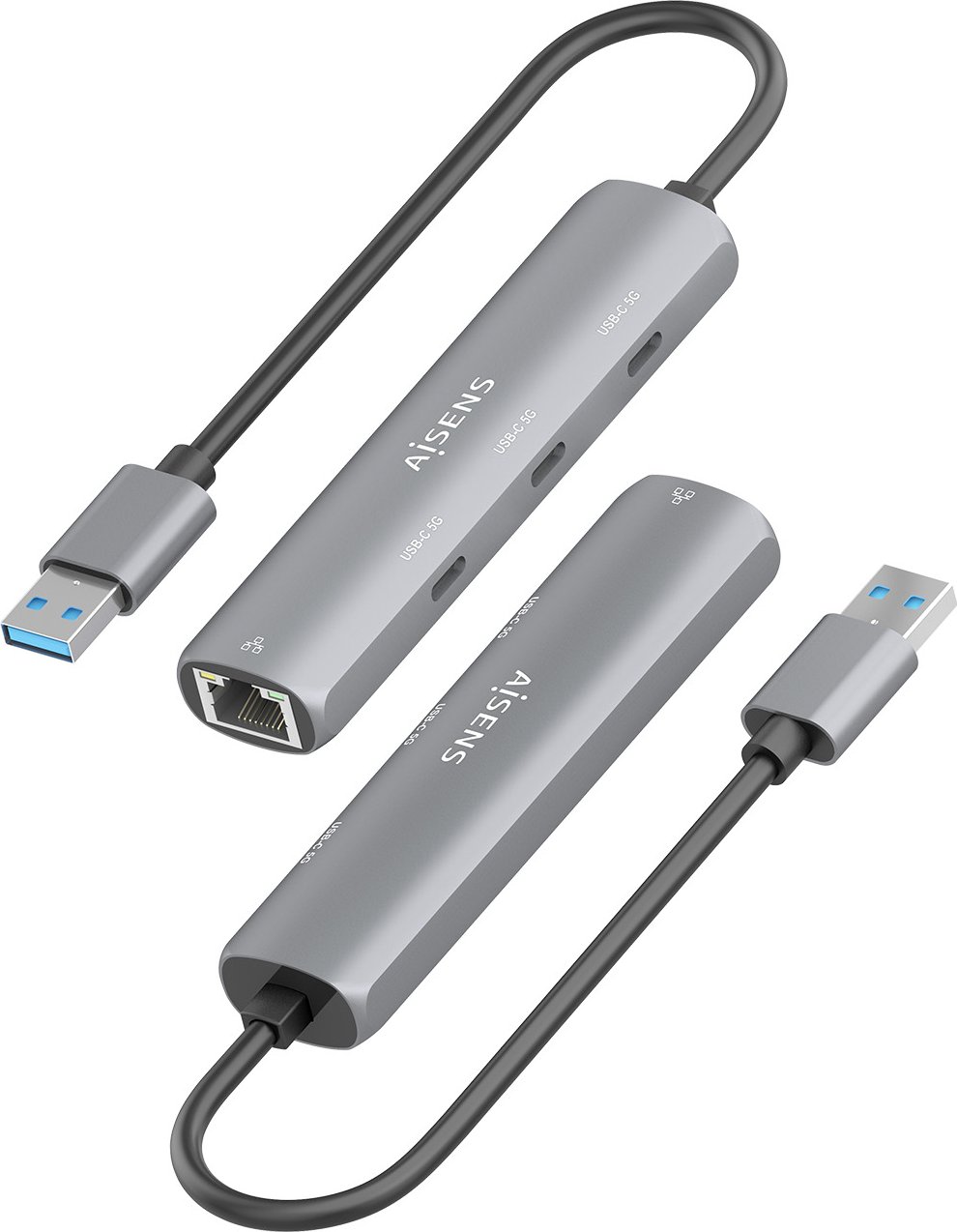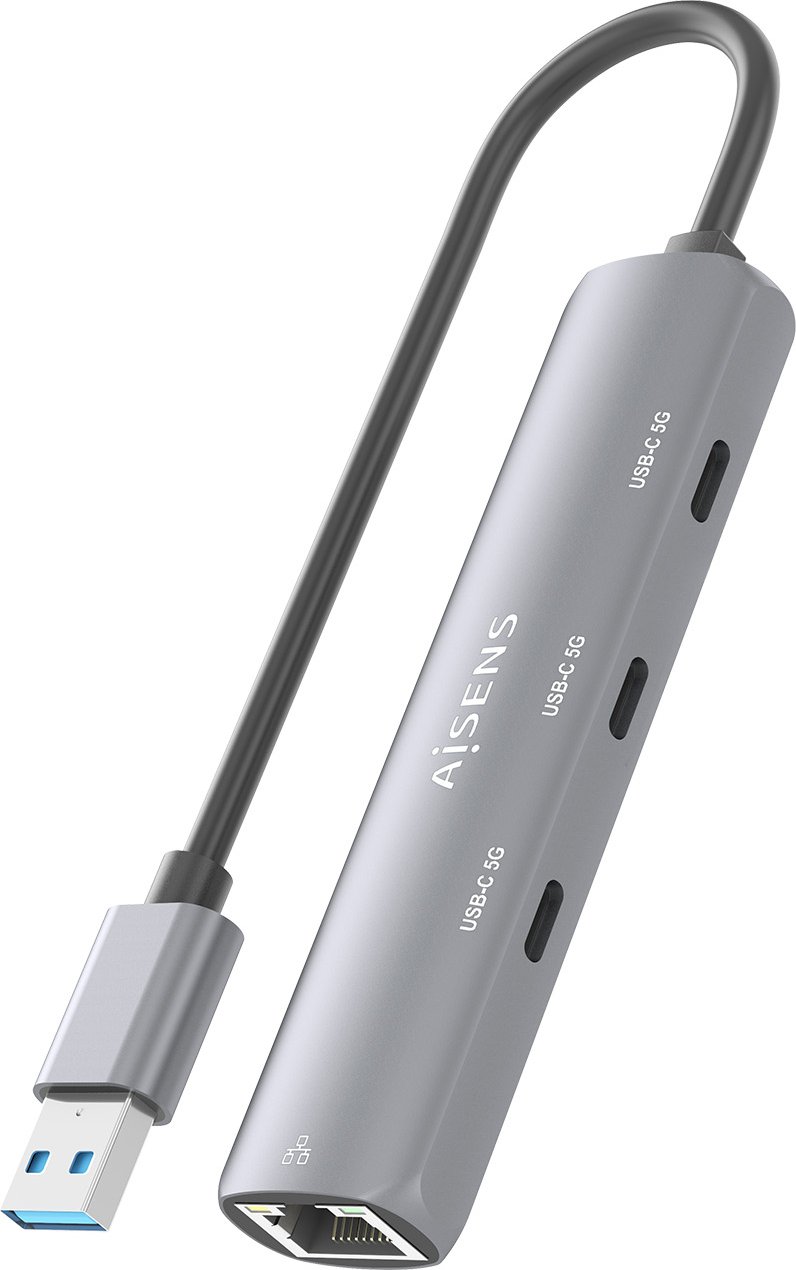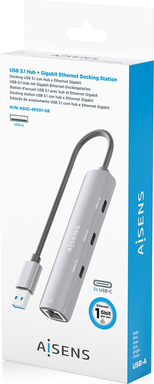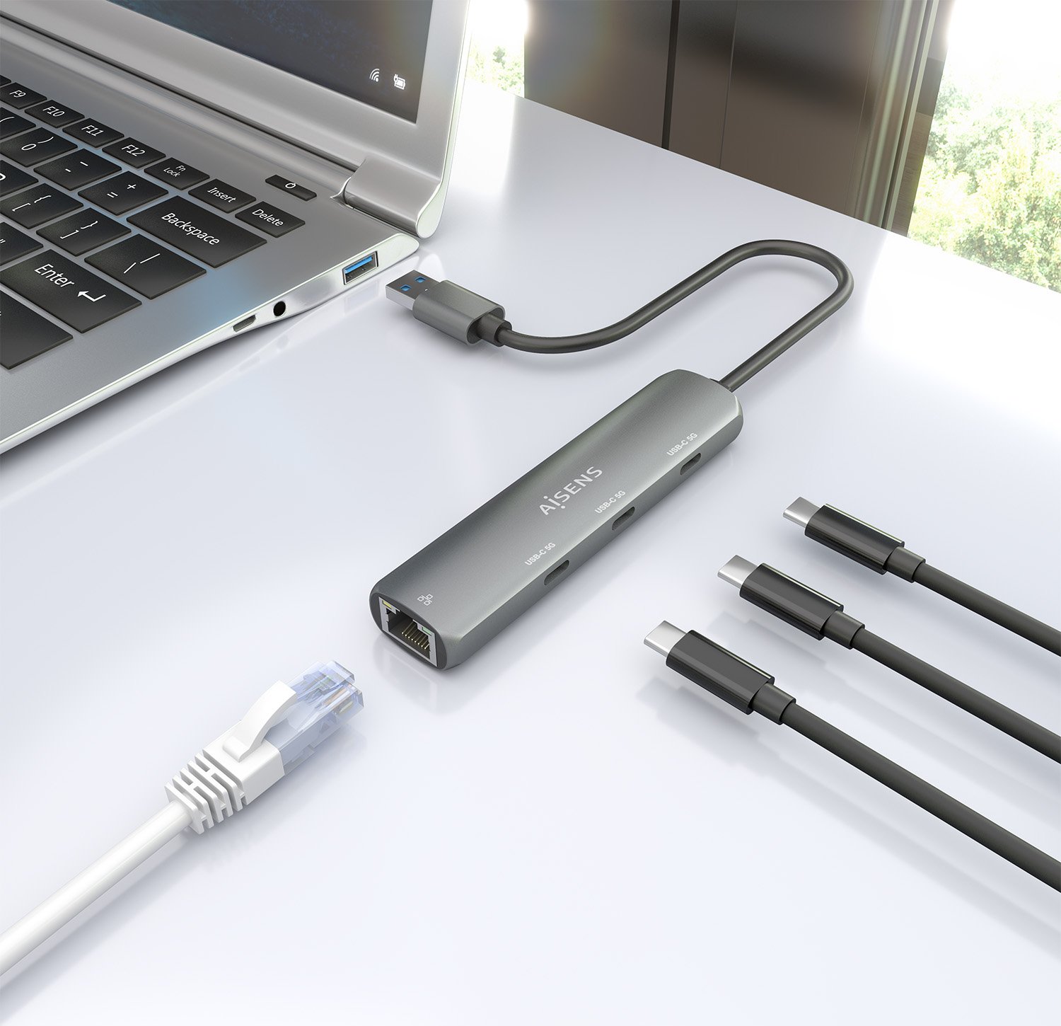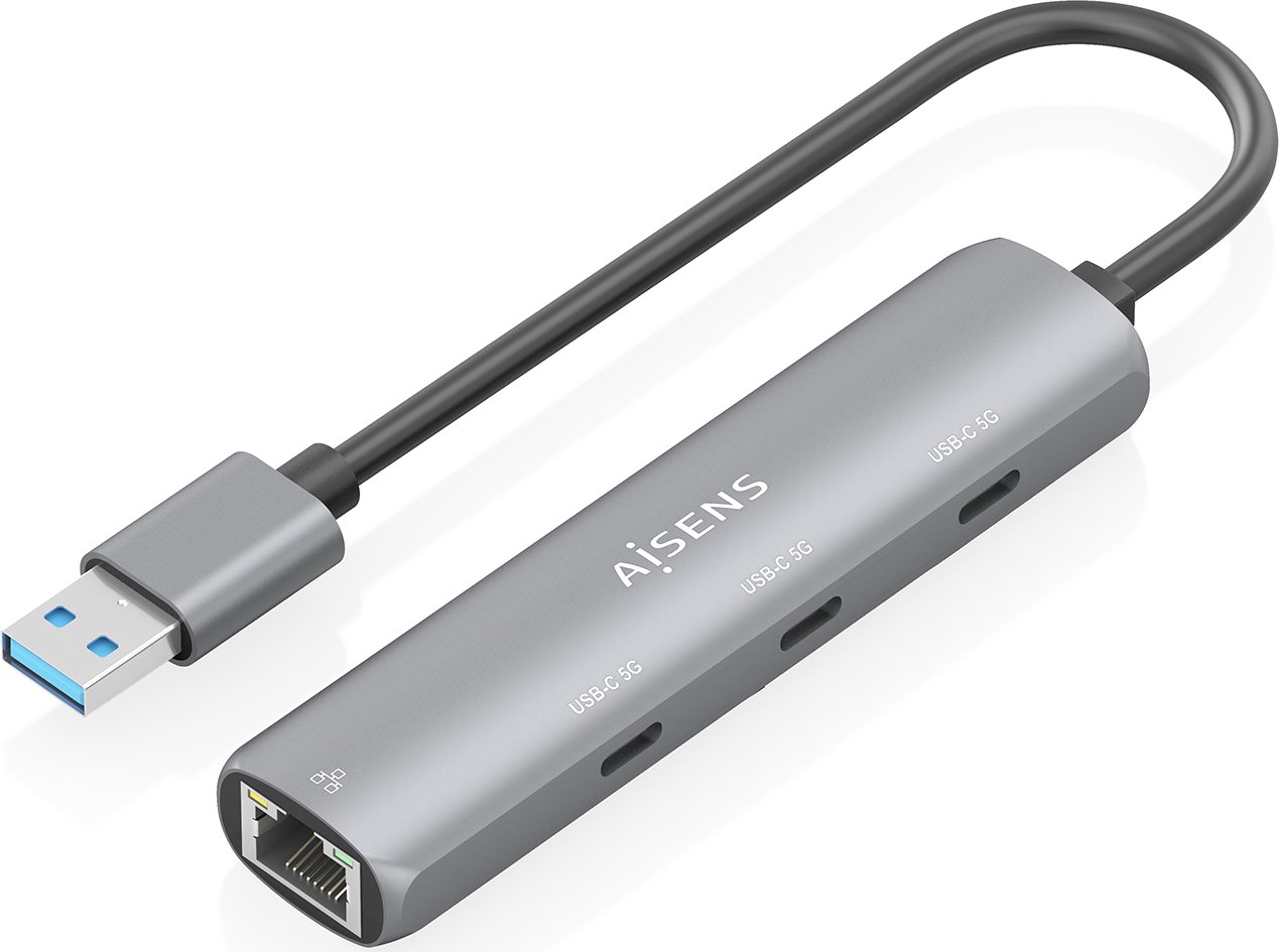 Aisens Usb3.0 Dock Usb-a A Ethernet Gigabit + Hub 3xusb-c, Gris, 15cm