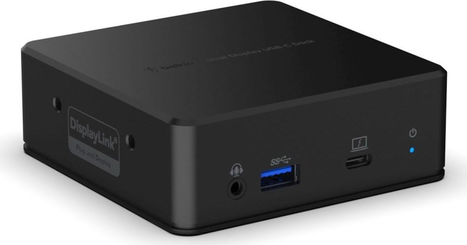 - Estación de acoplamiento Belkin USB-C Dual Display, diseñada para conectar múltiples dispositivos.
