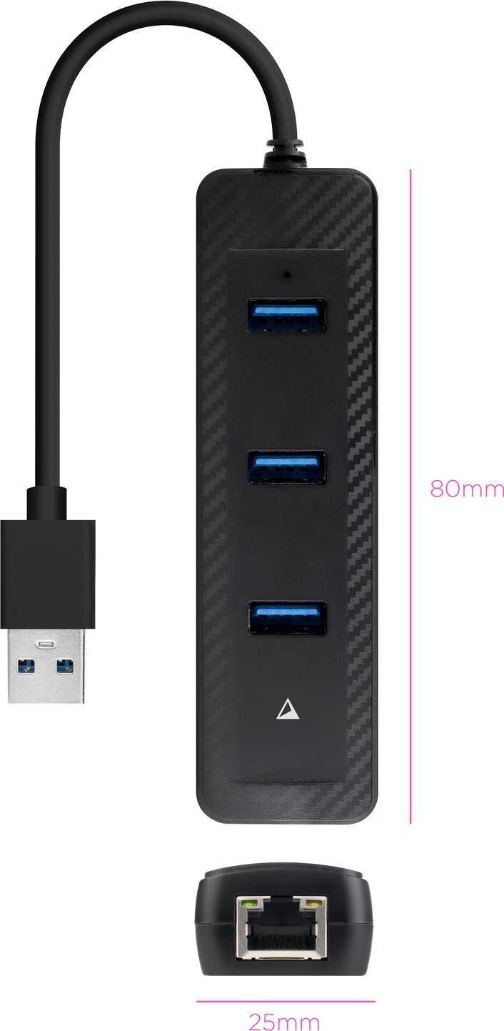 - Hub USB-A 3.0 a 3xUSB-A 3.0 + RJ45, USB-A/M- USB-A/M-RJ45/H, Negro, 15 cm