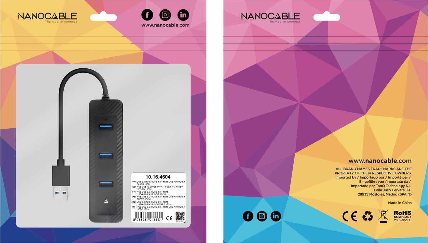 Hub Nanocable Usb-a A 1xusb-a 3.0 1xrj45 (10.16.4604)