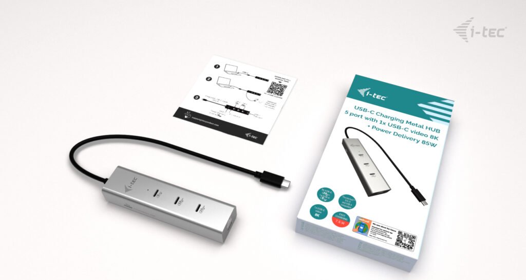 I-tec Metal Usb-c Charging Hub 5port With Usb-c Video 8k + Power Delivery 85w