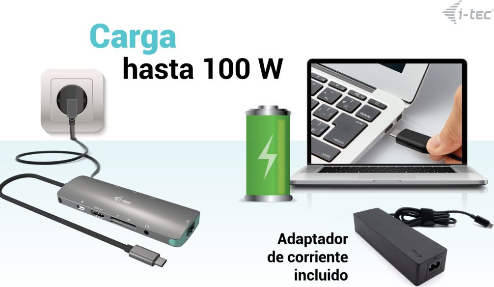La base también viene con un adaptador de corriente USB-C con un total de 100 W (puerto USB-C: 100 W)