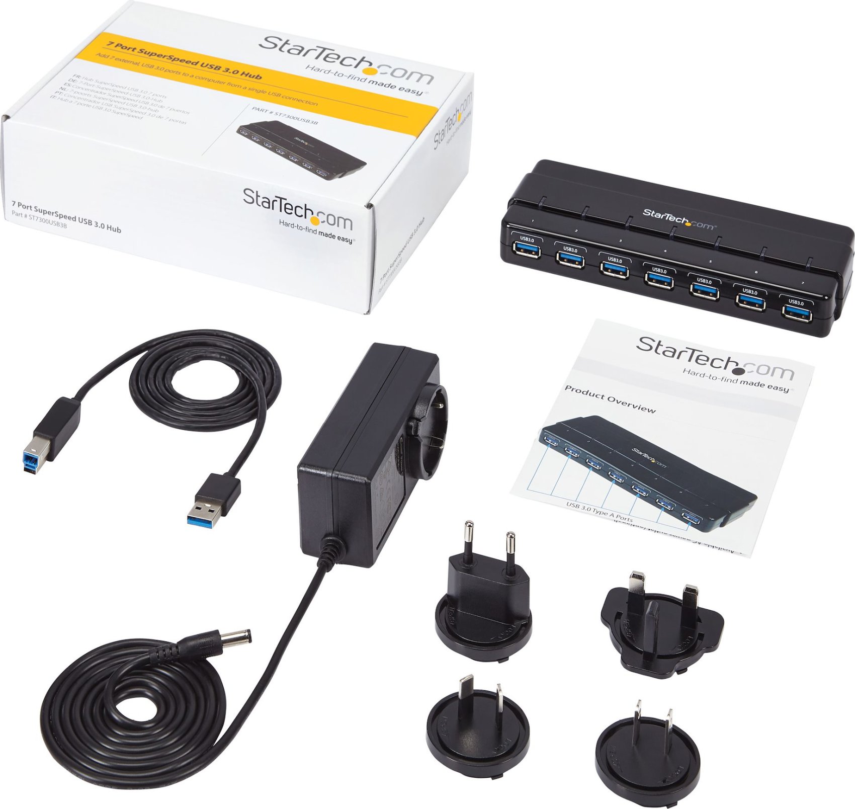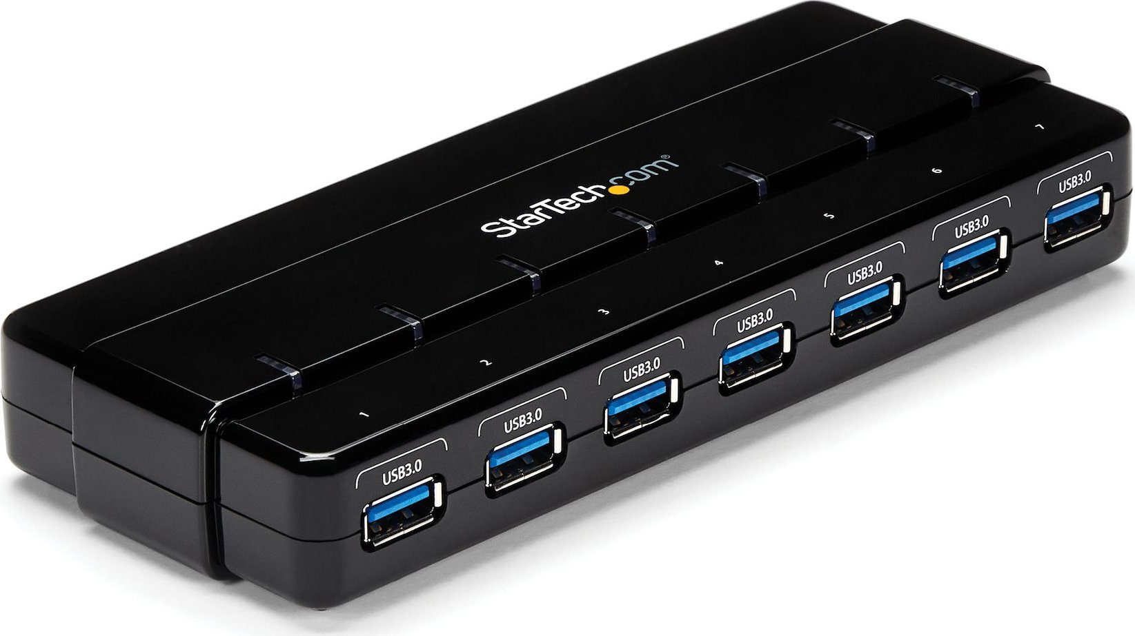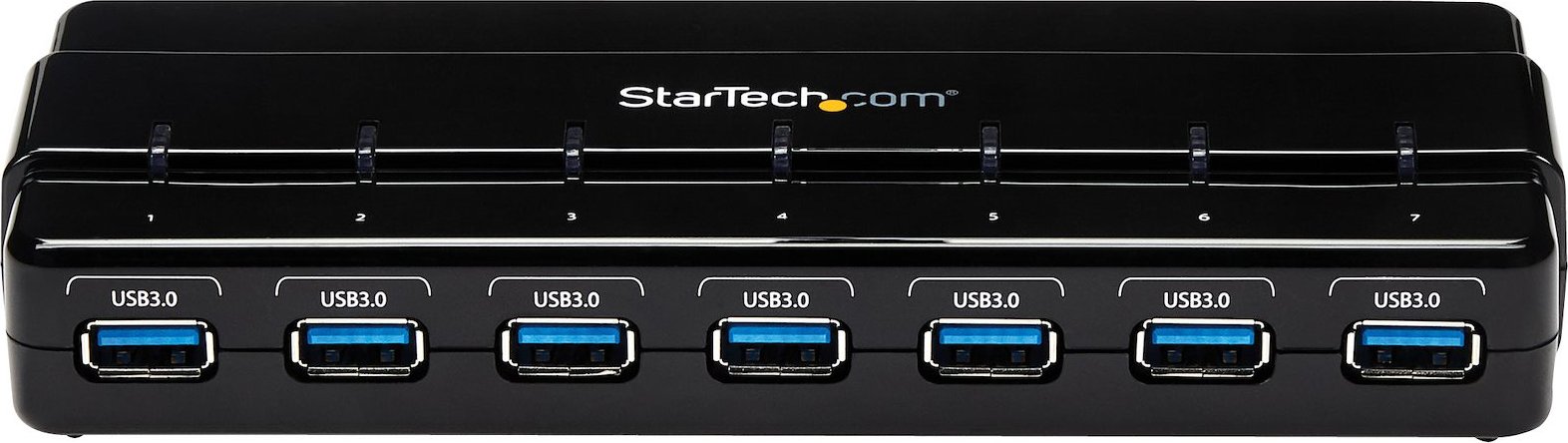 StarTech.com Concentrador Ladrón USB 3.0 de 7 Puertos - 5Gbps - Hub de Sobremesa. Interfaz de host: USB 3.2 Gen 1 (3.1 Gen 1) Type-B, Interfaces de concentradores: USB 3.2 Gen 1 (3.1 Gen 1) Type-A. Velocidad de transferencia de datos: 5000 Mbit/s, Color del producto: Negro, Material de la carcasa: Plástico. Tipo de fuente de alimentación: CC, Voltaje de entrada: 100 - 240 V, Corriente de entrada: 1.3 A. Ancho: 70 mm, Profundidad: 172 mm, Altura: 23 mm. Ancho del paquete: 148 mm, Profundidad del paquete: 209 mm, Altura del paquete: 63 mm