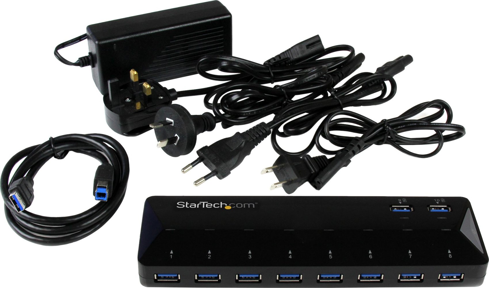 Startech.com Hub Concentrador Usb 3.0 De 10 Puertos - Ladrón Con Puertos De Carga Y Sincronización - Hub Con 2 Puertos De 1.5a - Negro