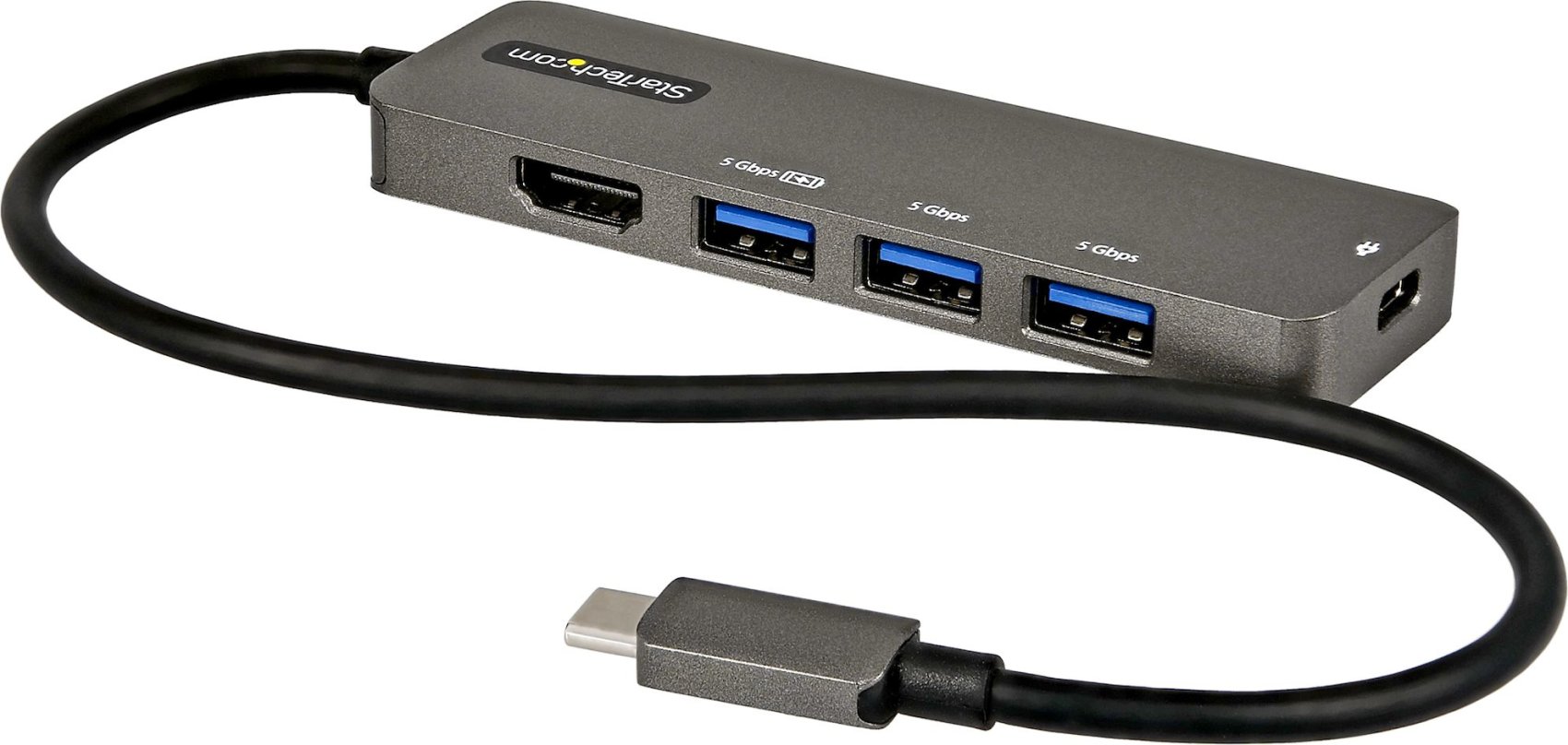 StarTech.com Adaptador Multipuertos USB-C - Docking Station USB Tipo C a HDMI 2.0b 4K de 60Hz (HDR10) - PD de 100W de Paso - Hub USB 3.0 de 4 Puertos - Replicador USBC - con Cable de 30cm. Interfaz de host: USB 3.2 Gen 1 (3.1 Gen 1) Type-C, Entrega de energía USB (USB Power Delivery) de hasta: 100 W, Versión HDMI: 2.0b. Ethernet LAN, velocidad de transferencia de datos: 10,100,1000,2000 Mbit/s, Estándares de red: IEEE 802.3, IEEE 802.3ab, IEEE 802.3u. Color del producto: Negro, Gris, Tipo HD: 4K Ultra HD, Interfaces de concentradores: HDMI, RJ-45, USB 3.2 Gen 1 (3.1 Gen 1) Type-A, USB 3.2 Gen 1 (3.1 Gen 1) Type-C. Sistema operativo Windows soportado: Windows 10, Windows 10 Education, Windows 10 Education x64, Windows 10 Enterprise, Windows 10..., Sistema operativo MAC soportado: Mac OS X 10.10 Yosemite, Mac OS X 10.11 El Capitan, Mac OS X 10.12 Sierra, Mac OS X 10.13 High..., Otros sistemas operativos soportados: ChromeOS. Peso: 61 g