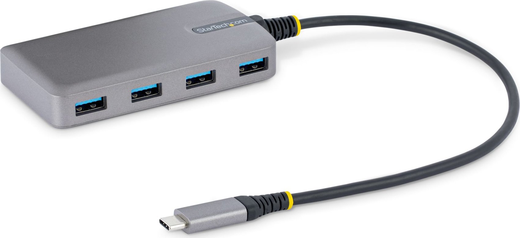 StarTech.com Hub USB de 4 Puertos USBA - USB 3.0 de 5Gbps - Alimentado por el Bus - Concentrador USB-C de 4 Puertos USB-A con Alimentación Opcional - Ladrón USB Portátil - Cable 30cm. Interfaz de host: USB 3.2 Gen 1 (3.1 Gen 1) Type-C, Interfaces de concentradores: MicroUSB, USB 3.2 Gen 1 (3.1 Gen 1) Type-A. Velocidad de transferencia de datos: 5000 Mbit/s, Color del producto: Gris, Material de la carcasa: Plástico. Tipo de fuente de alimentación: USB. Ancho: 54 mm, Profundidad: 420 mm, Altura: 16 mm. Ancho del paquete: 142 mm, Profundidad del paquete: 170 mm, Altura del paquete: 30 mm