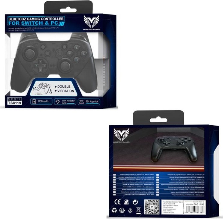 Mando Gamepad Inalámbrico Nintendo Switch - PC / 800 mAh / Bt 5.0 / TS8119 / MTK / 0851192