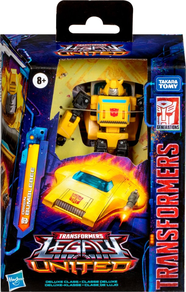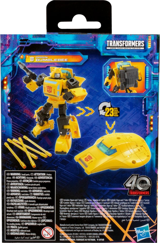 Hasbro Transformers: Legacy Deluxe Class Origin Bumblebee. Edad recomendada (mín.): 8 año(s), Número de transformaciones: 2, Número de pasos de conversión: 23, Material: Plástico, Color del producto: Negro, AmarilloMarca: