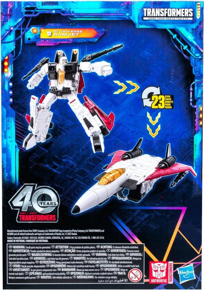 Hasbro Transformers: Legacy United Voyager Class G1 Universe Ramjet. Edad recomendada (mín.): 8 año(s), Número de transformaciones: 2, Número de pasos de conversión: 23, Material: Plástico, Color del producto: Negro, Rojo, BlancoMarca: