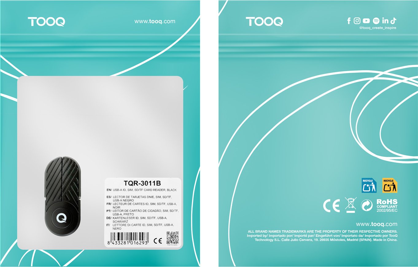 Tooq Lector Tarjetas Inteligentes, Dni Electrónico, Usb-c, Negro