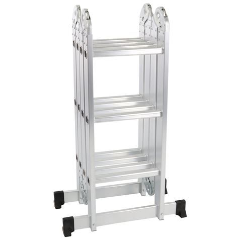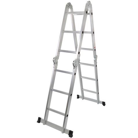 • Escalera multiposición fabricada en aluminio con 12 peldaños que se pueden colocar en 4 posiciones distinta. • Cuando está replegada puede soportar hasta 80 kg de peso como máximo se puede colocar en cualquier tipo de suelo.